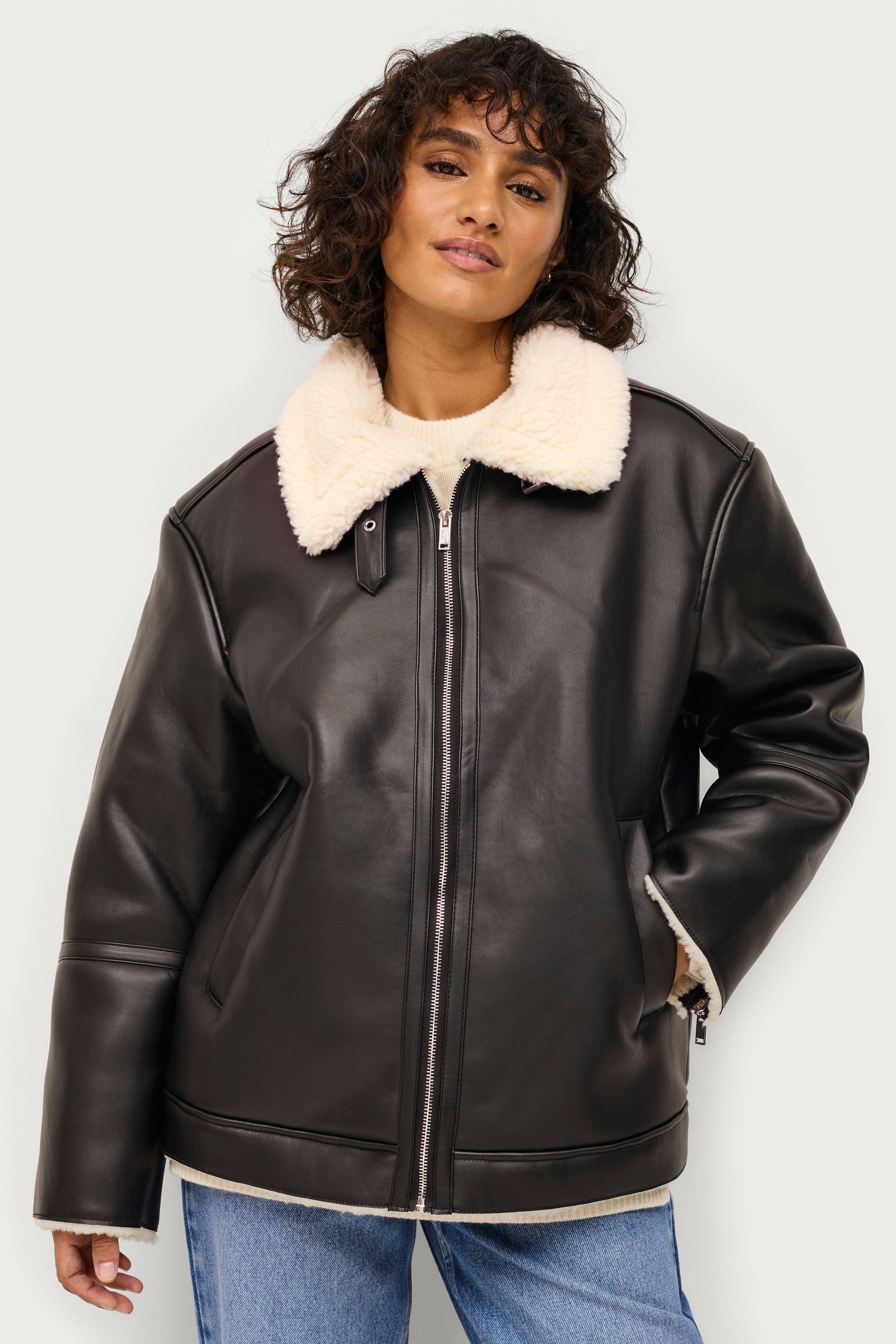 • Jakke i imiteret læder med teddyforing• Lynlåslukning• To lommer• Længde: 67 cm i størrelse S