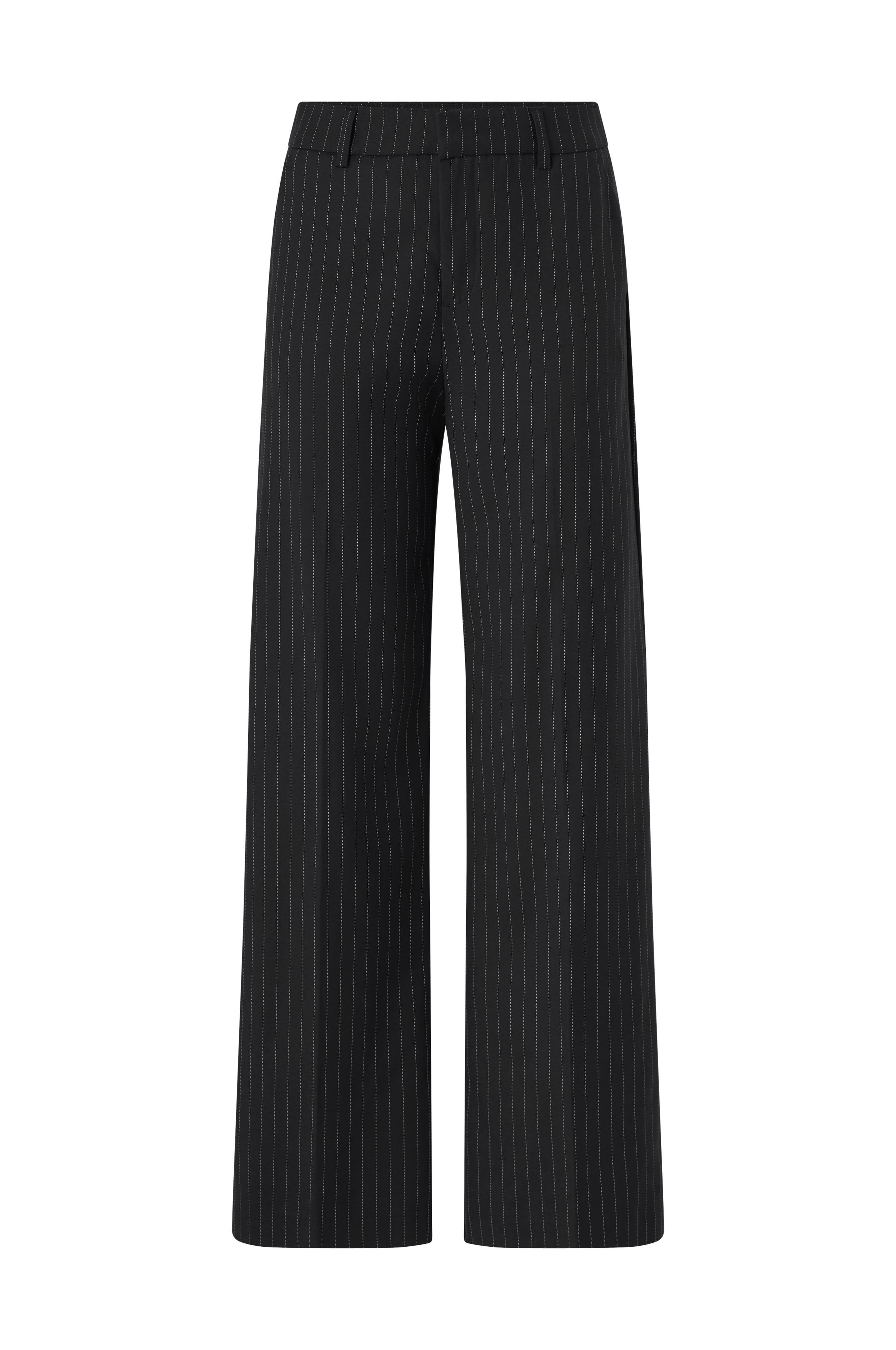 • Jakkesætsbukser med brede, lige bukseben• Lynlås-, hægte- og knaplukning ved fronten• Snydelomme bagpå• Lommer i siderne• Indre benlængde: 77 cm i størrelse 36