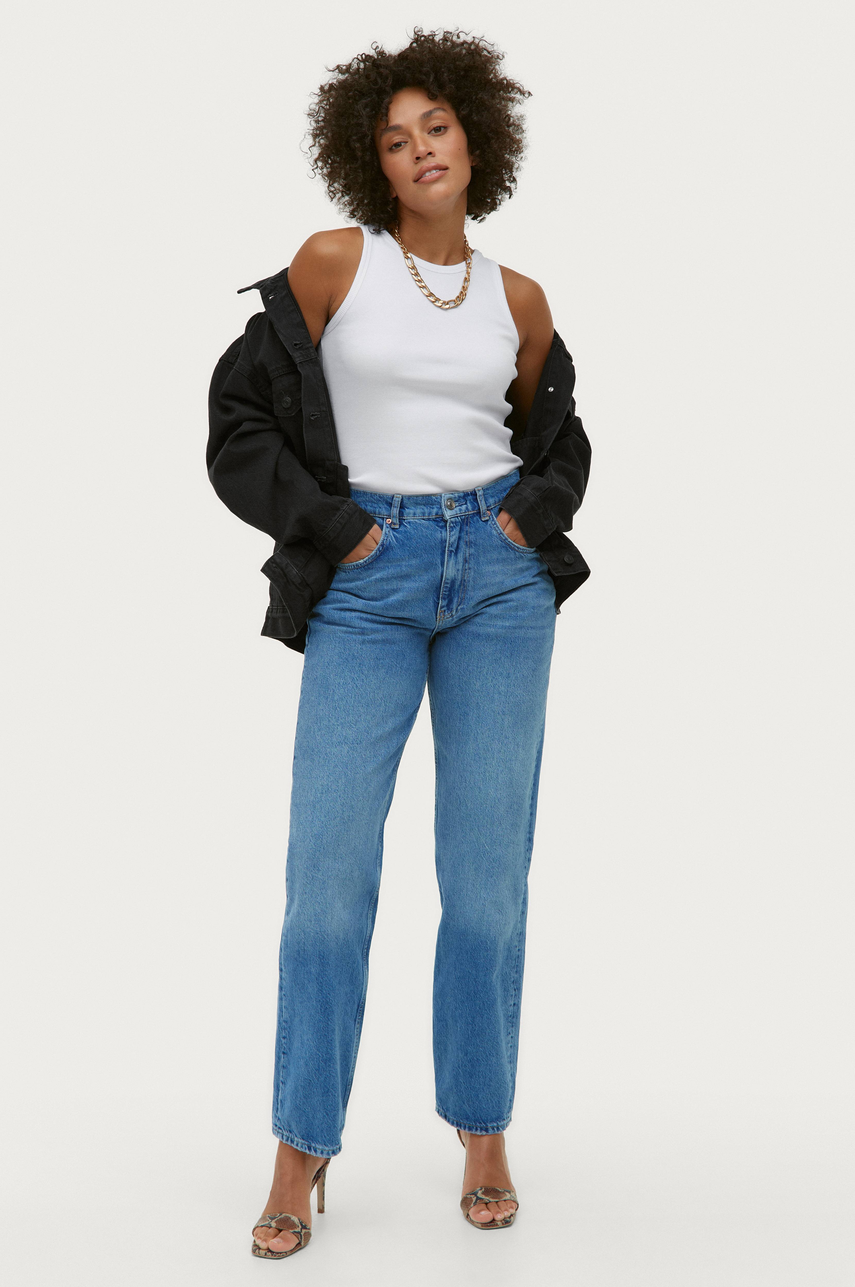 • Høj talje• Lige model med meget slidte partier• Fem lommer• Lynlås• Fremstillet af denim