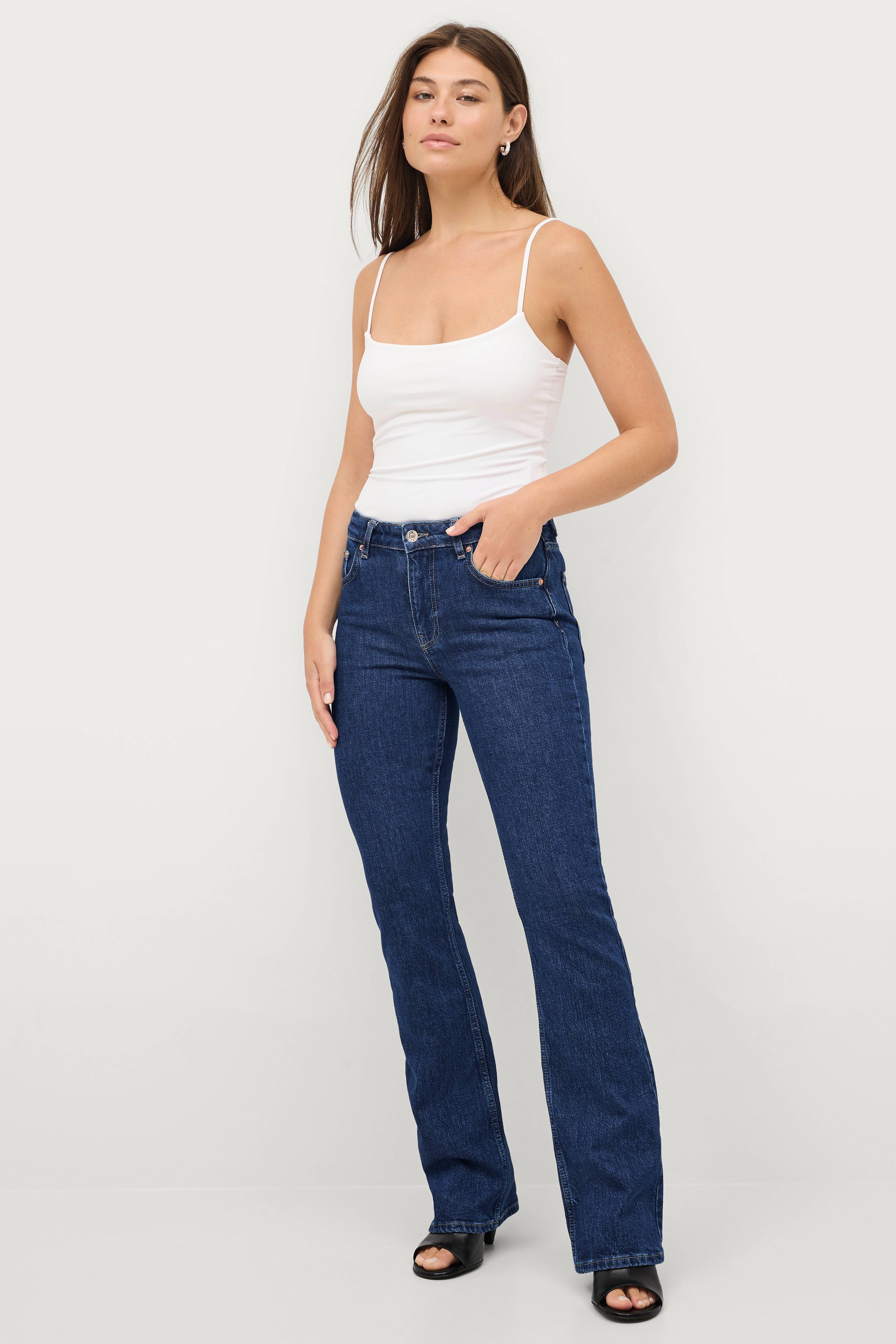 • Bootcut jeans med benafslutninger med svaj• Mediumhøj talje• Femlommemodel• Gylp med lynlås