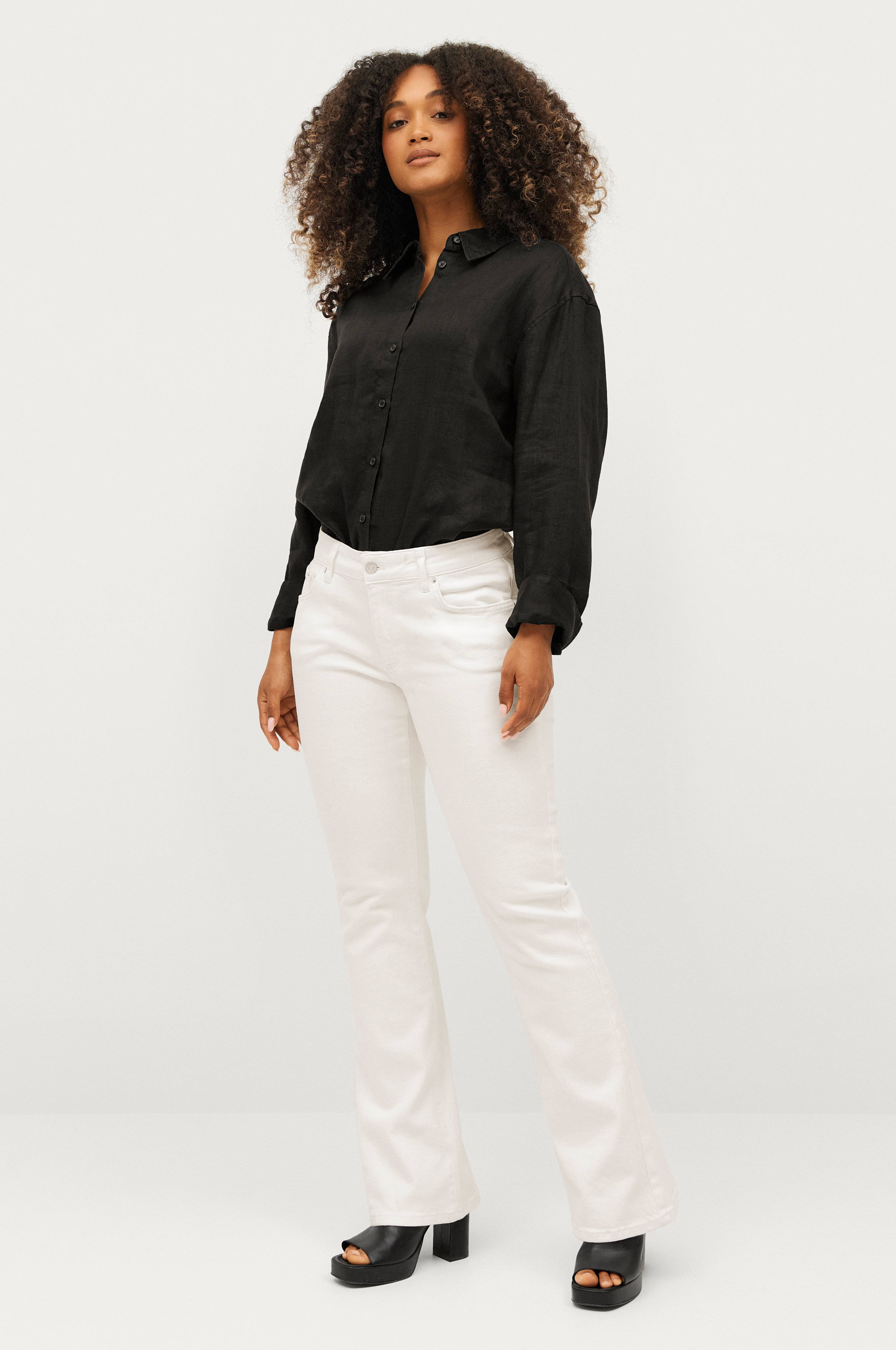 • Lav talje• Brede ben• Fem lommer• Gylp med lynlås