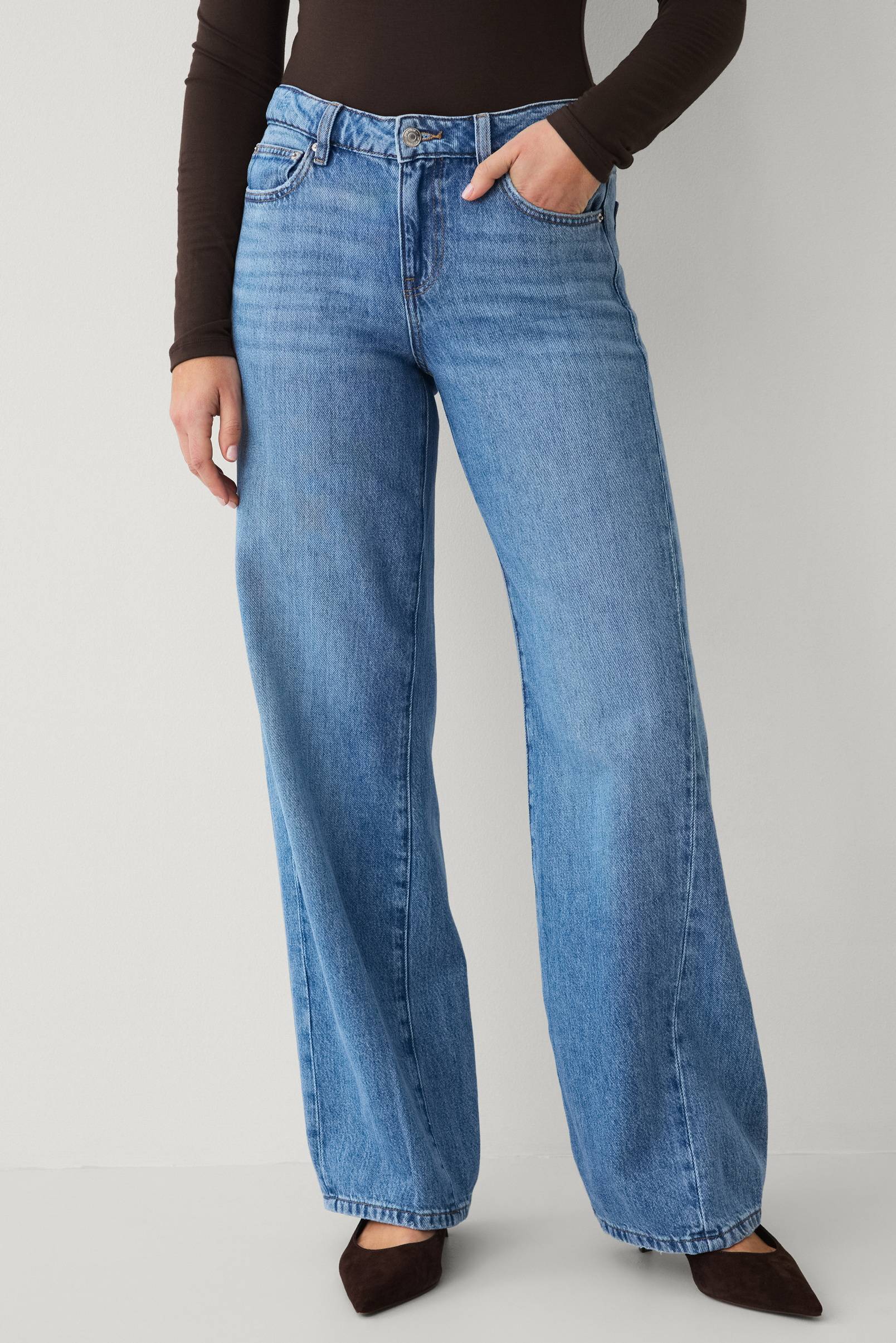 • Jeans med lav talje• Brede ben• Gylp med lynlås• Femlommemodel• Indre benlængde: 82 cm i størrelse 36