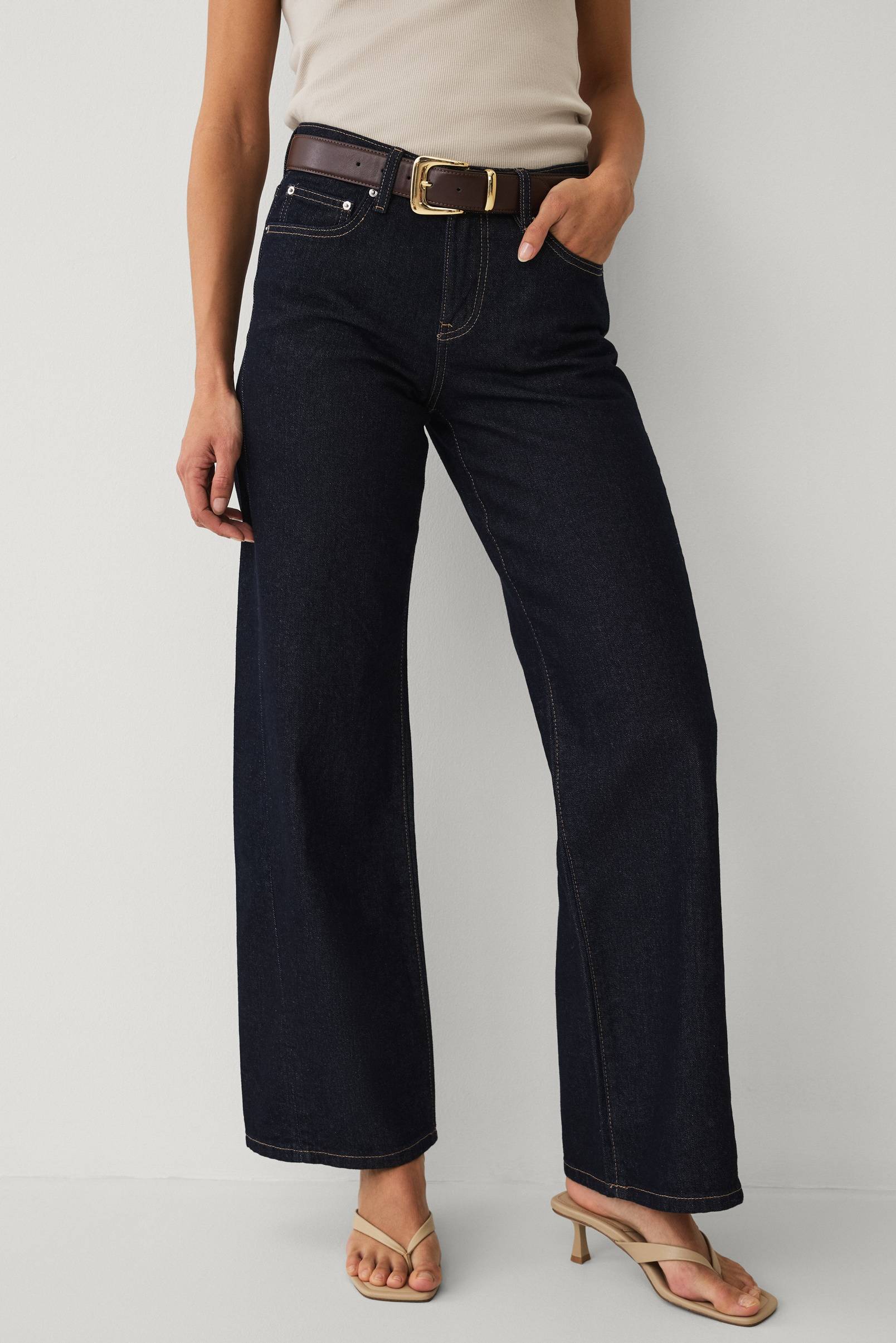 • Jeans med lav talje• Brede ben• Gylp med lynlås• Femlommemodel• Indre benlængde: 82 cm i størrelse 36