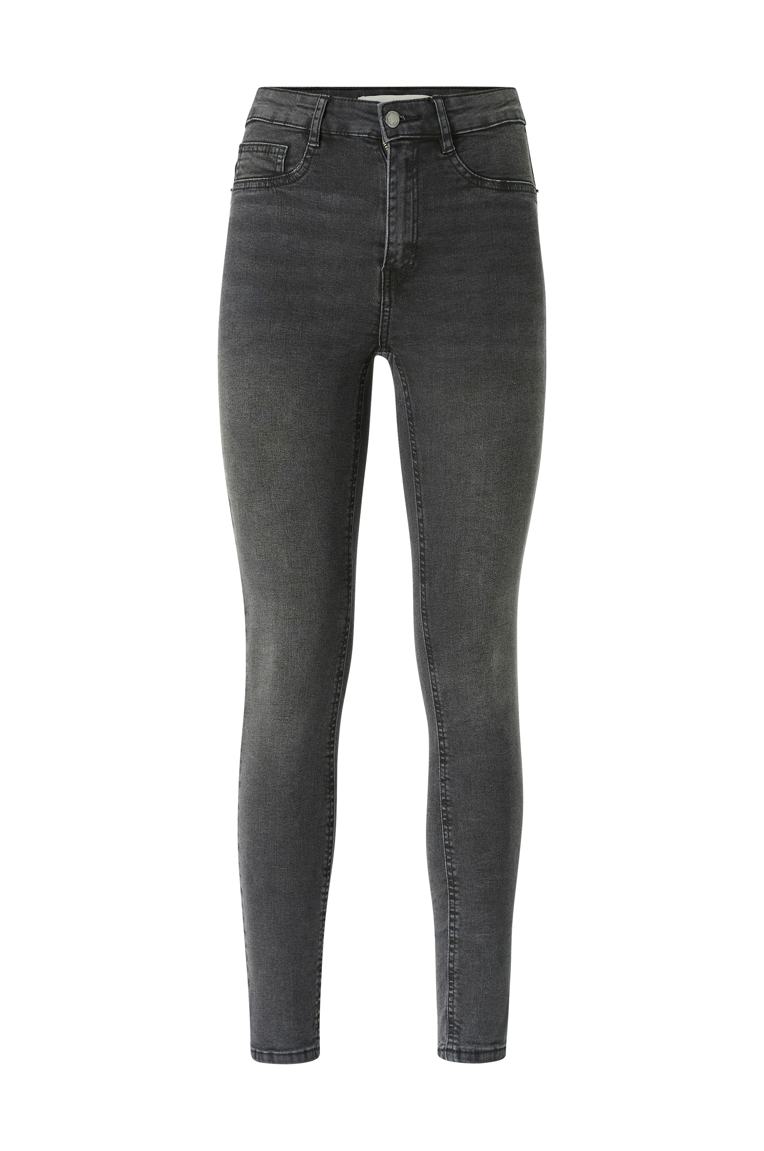 • Jeans i elastisk materiale med høj talje• Lukning med knap og lynlås foran• Lommer bagpå• Snydelommer ved fronten• Smal pasform• Indre benlængde: 74 cm i størrelse S