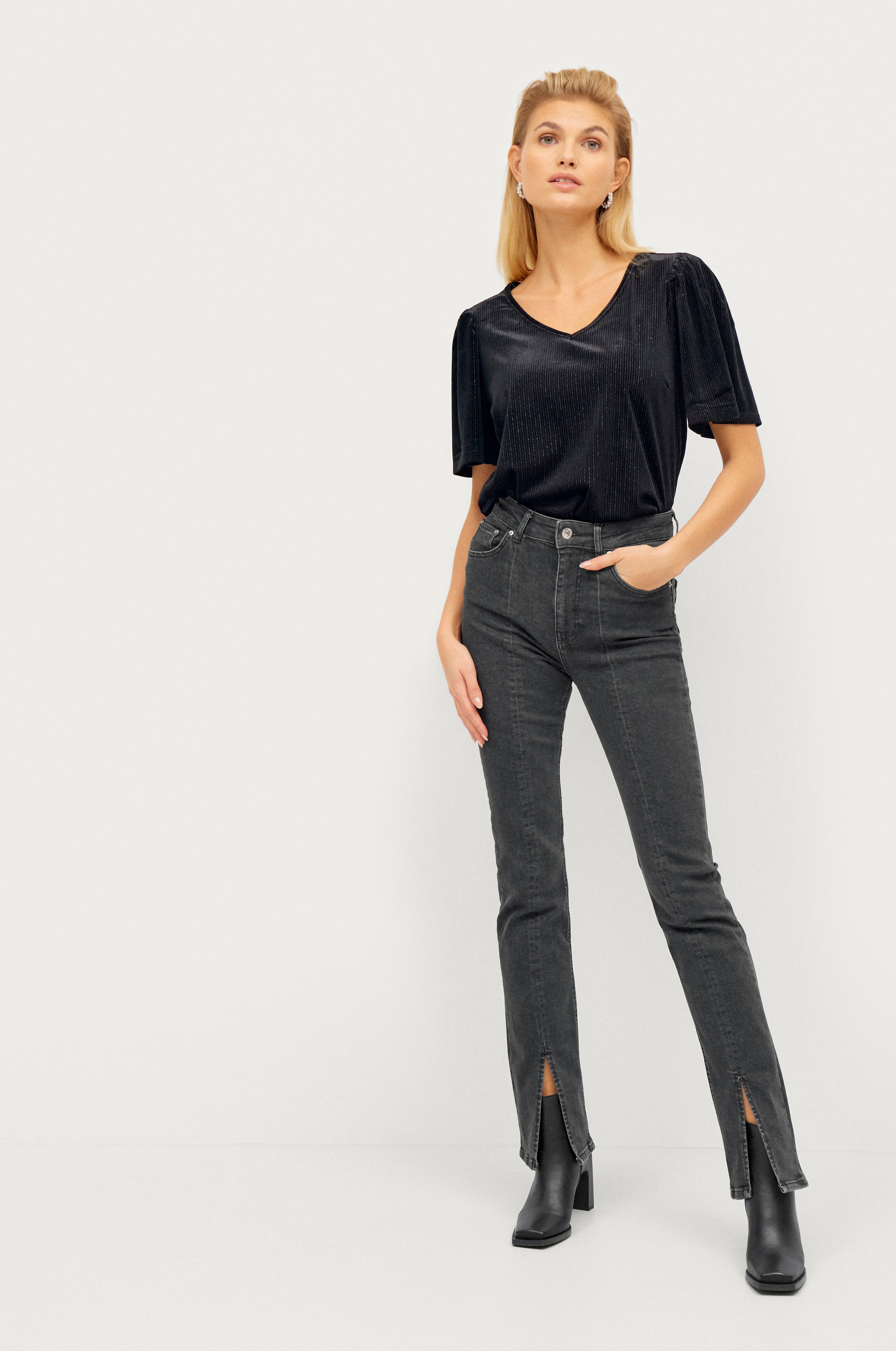 • Smal pasform• Dekorativ søm foran• Slids ved enden af benene• Fem lommer• Gylp med lynlås• Strækkvalitet