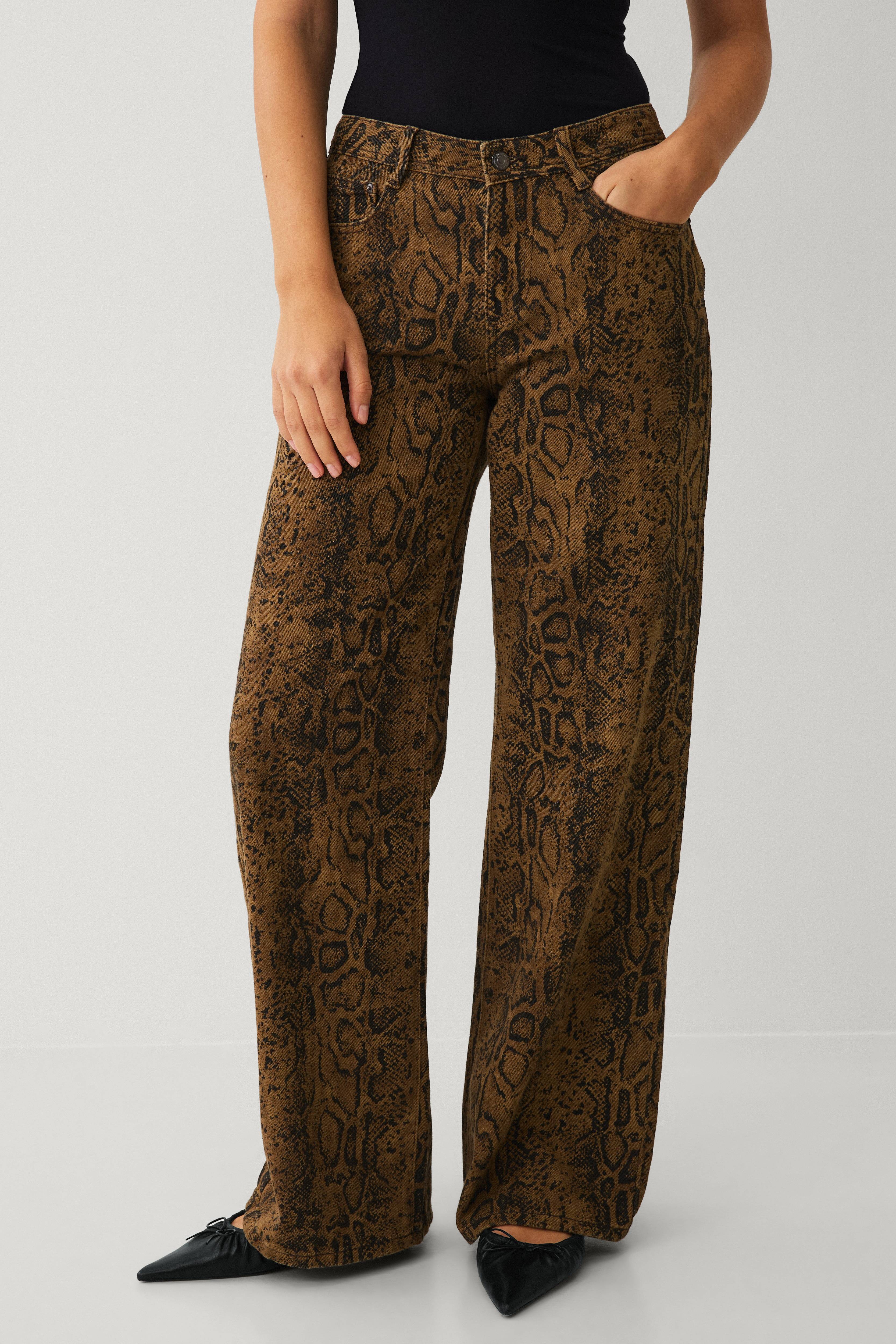 • Brede jeans• Mediumhøj talje• Bælteløkker• Lynlås- og knaplukning• Femlommemodel• Indre benlængde: 82 cm i størrelse 36