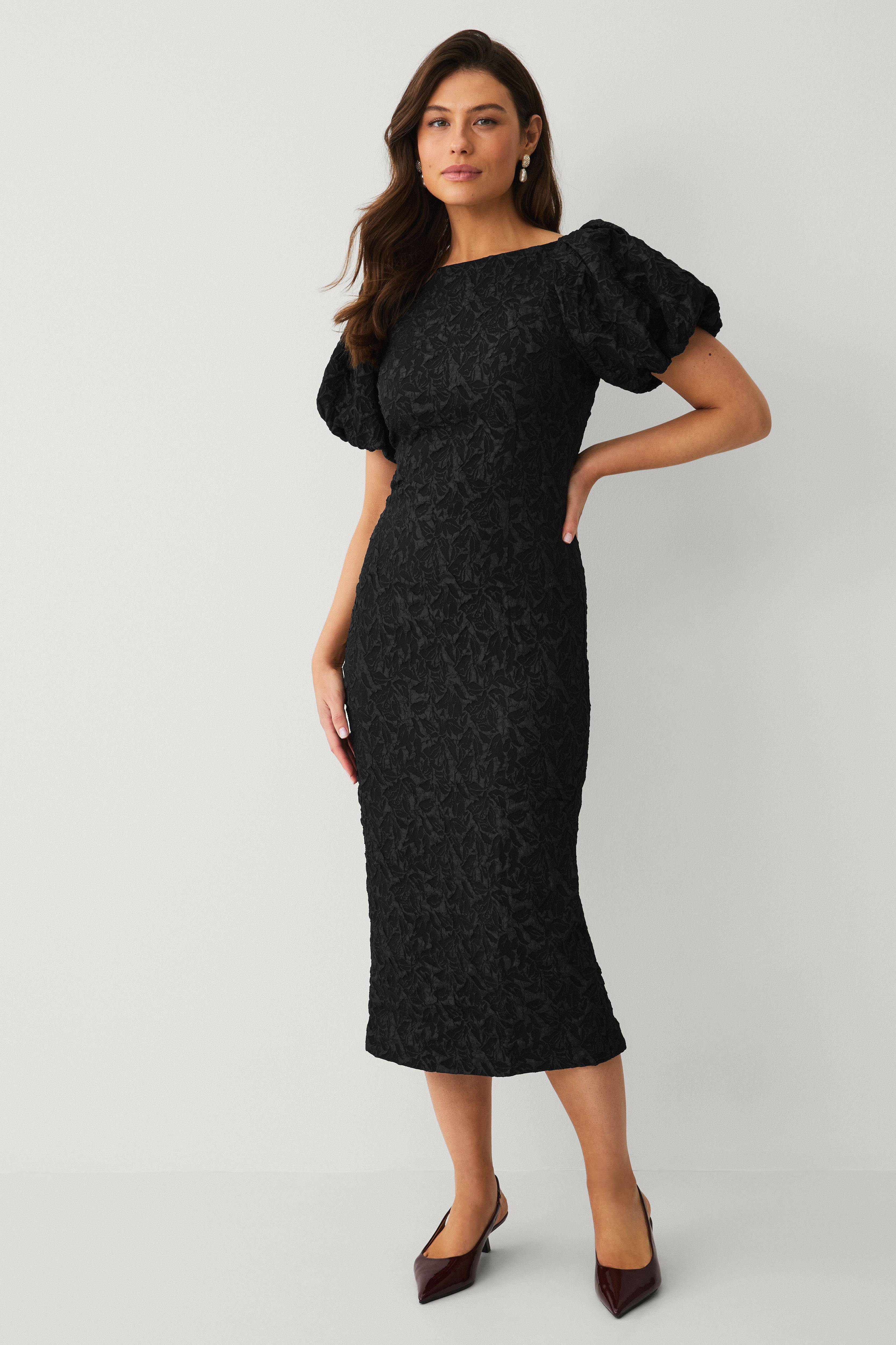 • Mønstervævet kjole med bådudskæring