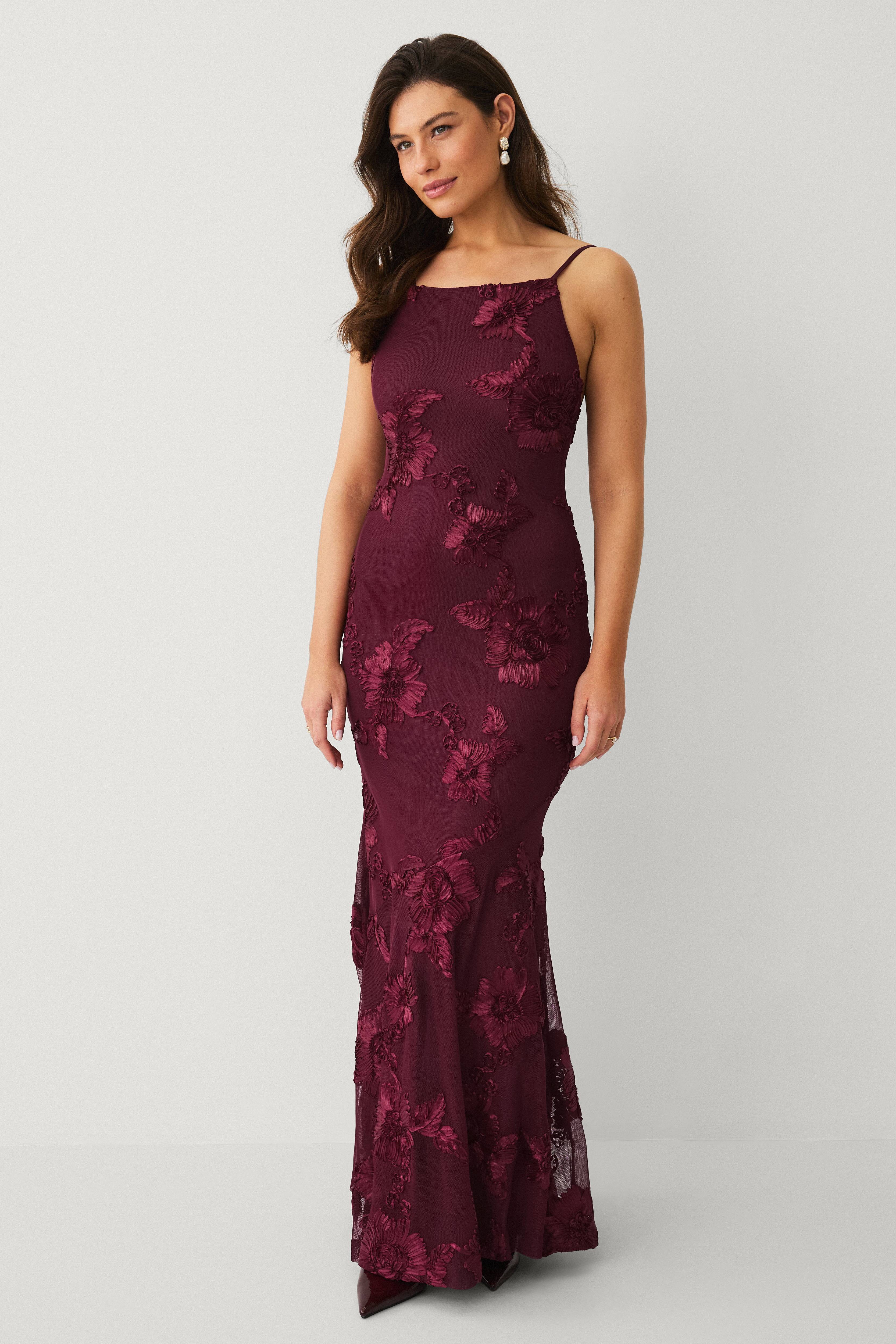 • Lang, ærmeløs kjole i mesh med dekorative broderier hele vejen rundt• Firkantet halsudskæring• Justérbare skulderstropper• Lynlås i ryggen• Nederdel med svaj• Foret• Længde: 138 cm i størrelse S
