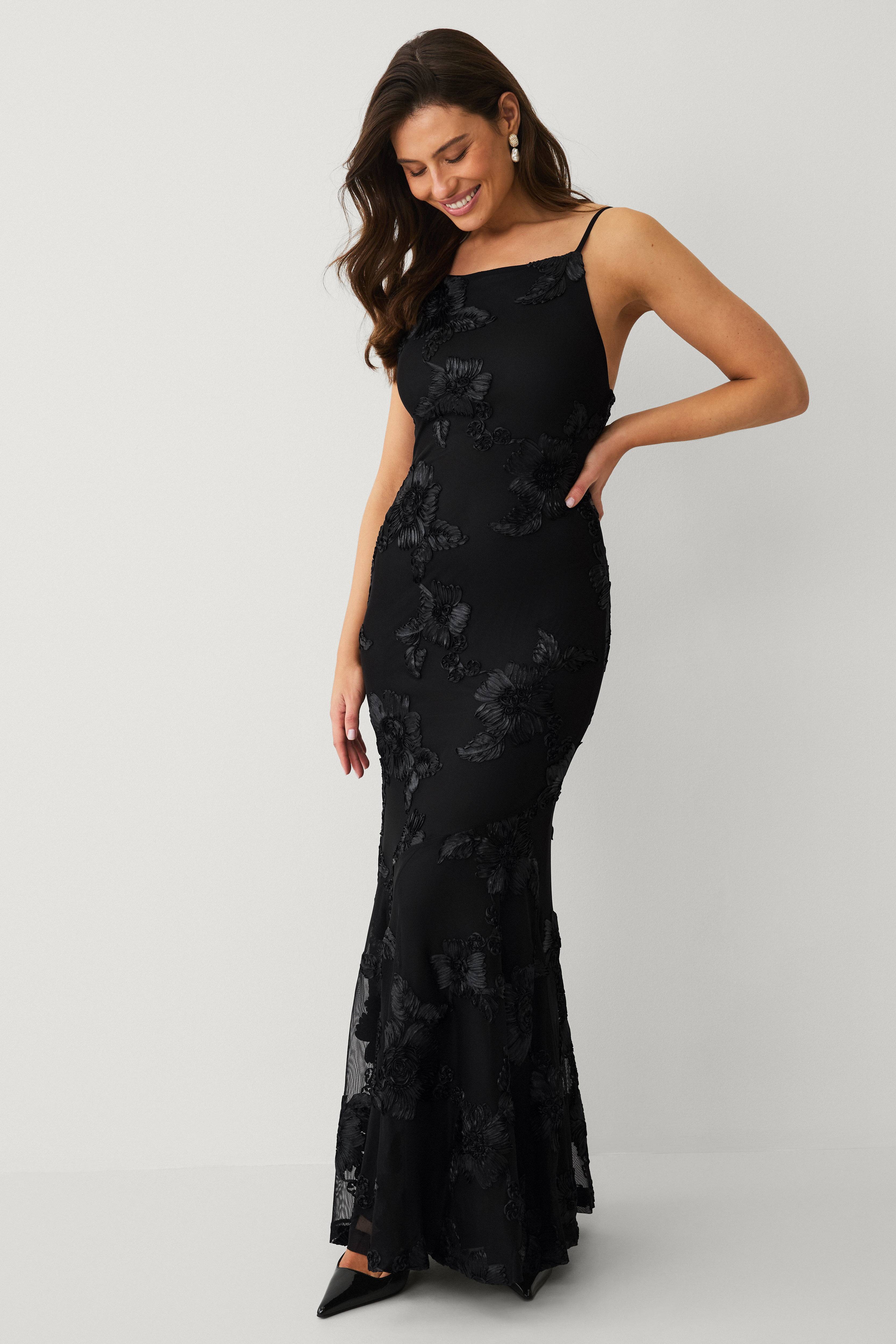 • Lang, ærmeløs kjole i mesh med dekorative broderier hele vejen rundt• Firkantet halsudskæring• Justérbare skulderstropper• Lynlås i ryggen• Nederdel med svaj• Foret• Længde: 138 cm i størrelse S