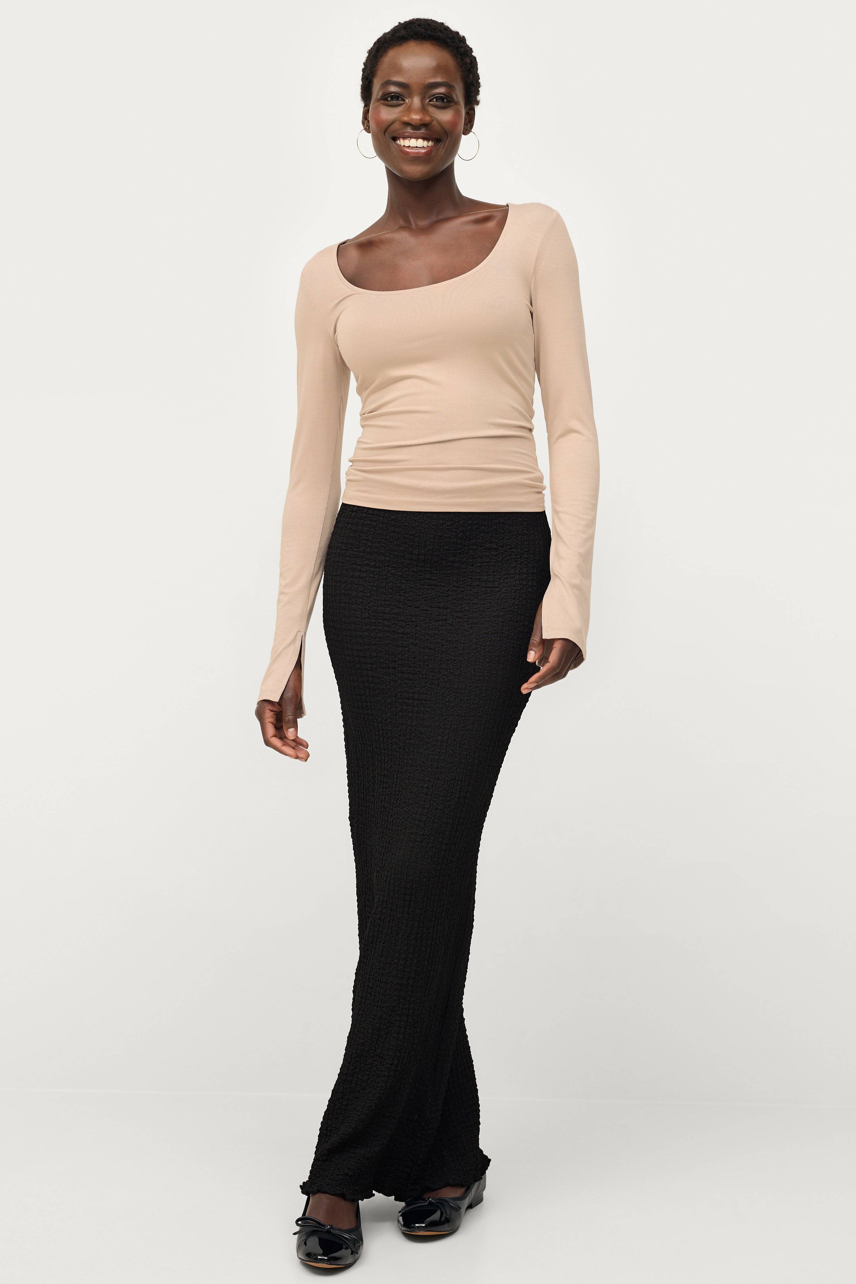 Virkelig flot tekstur med det 'boblede' stof, som ser godt ud på en stram nederdel! Lidt for lang, men ellers perfekt✔️
