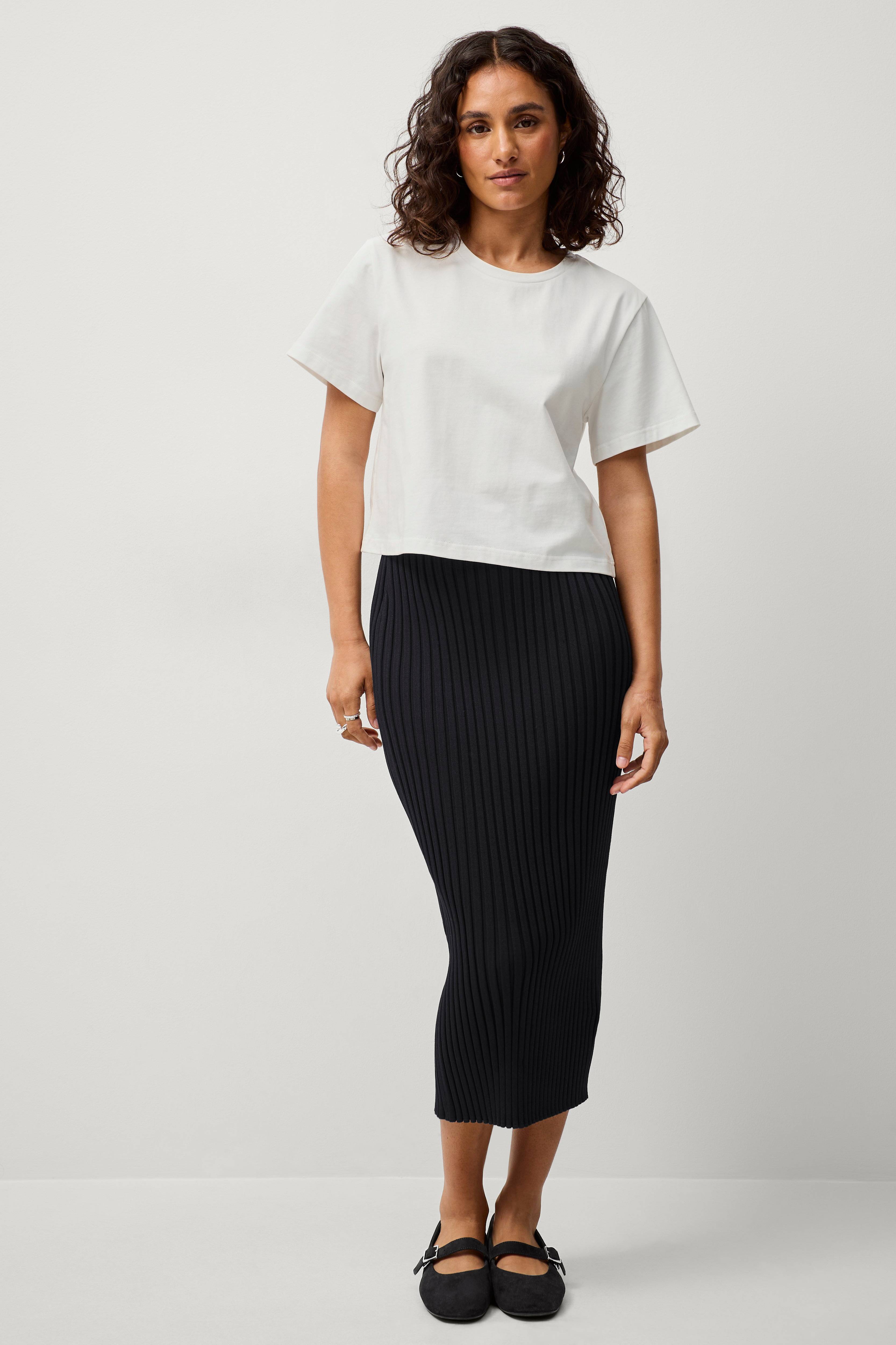 • Ribstrikket nederdel• Figursyet pasform• Elastisk talje• Længde: 84 cm i størrelse S