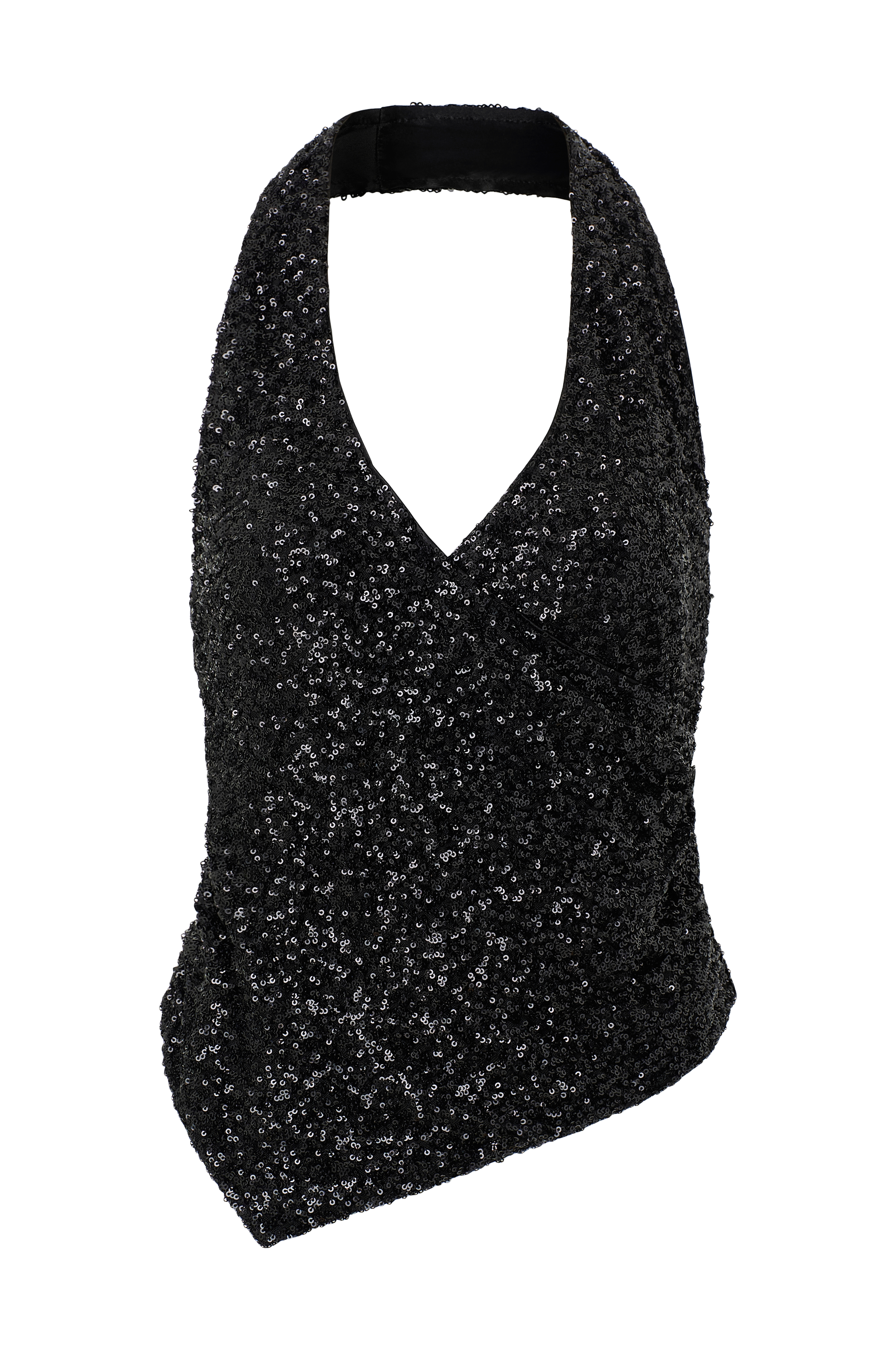 • Ærmeløs top med paillet hele vejen rundt• Halterneckdesign• Slå-om design på toppen• Foret