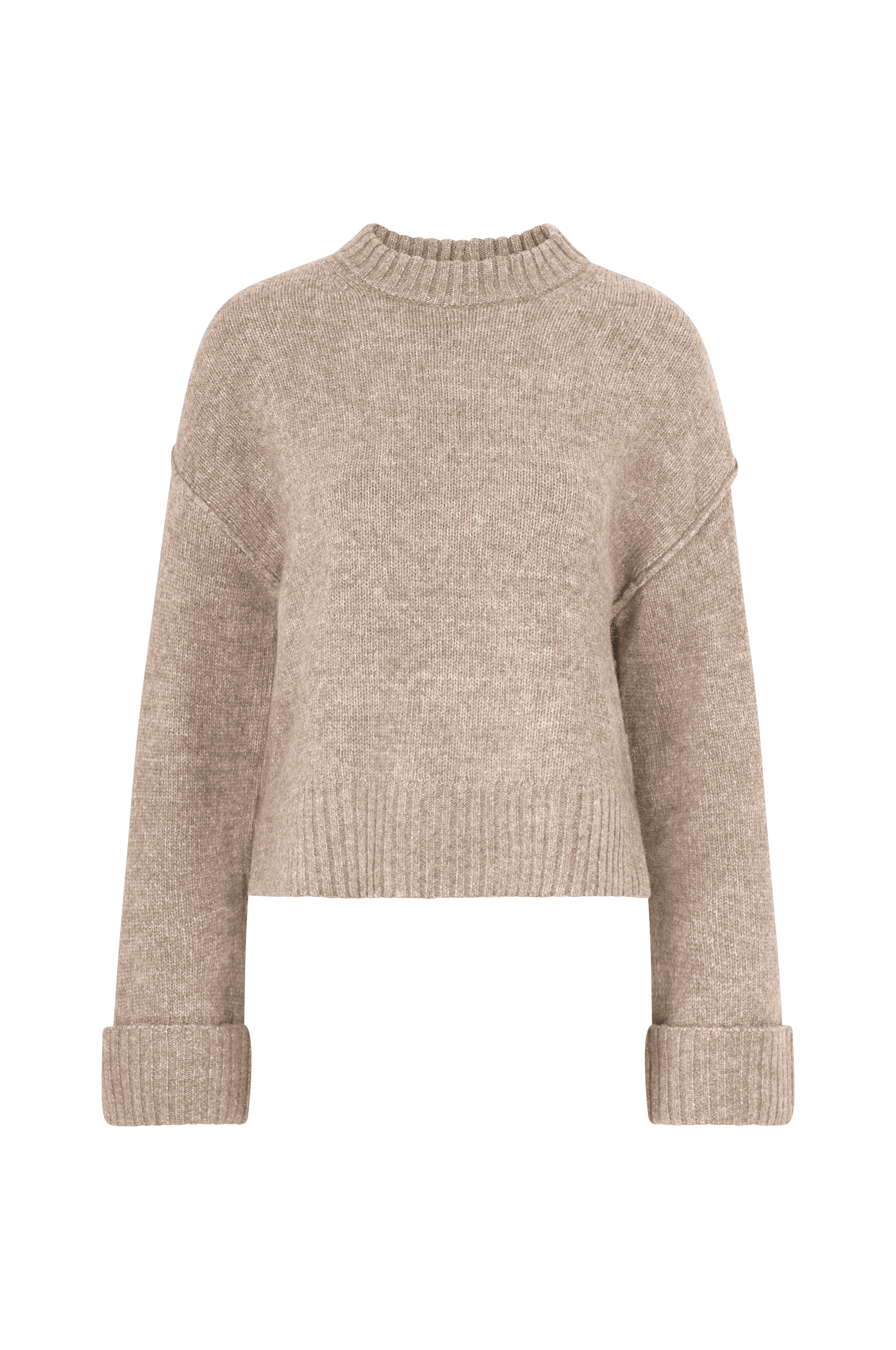 • Strikket Pullover med ribbet krave• Lange ærmer med nedsænkede skuldre og foldede, ribstrikkede ærmeafslutninger• Ribstrik nederst med slids i siderne