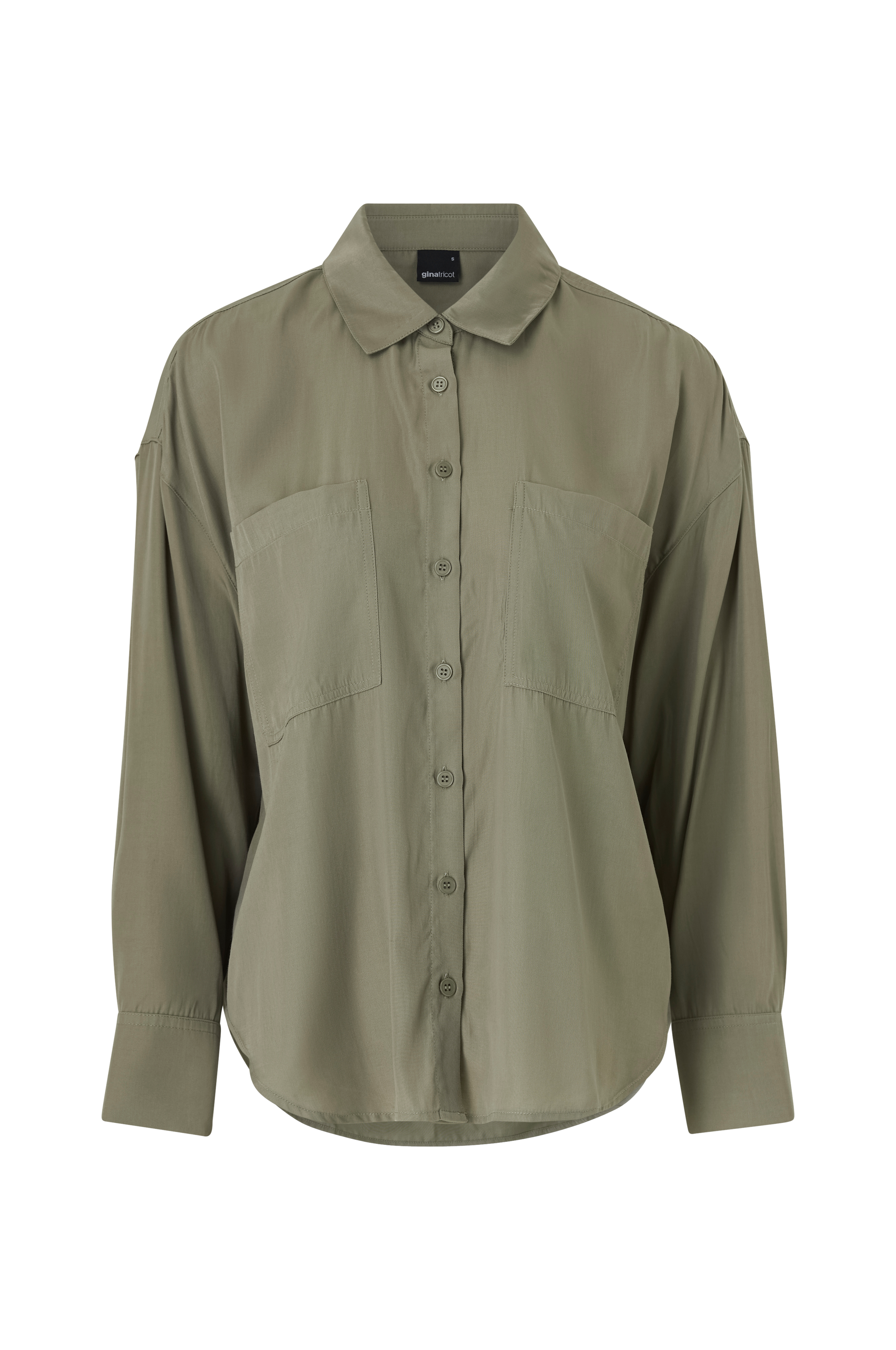 • Let skinnende skjorte i viskoseblanding• Løs pasform• To brystlommer• Manchet med to knapper• Afrundet søm