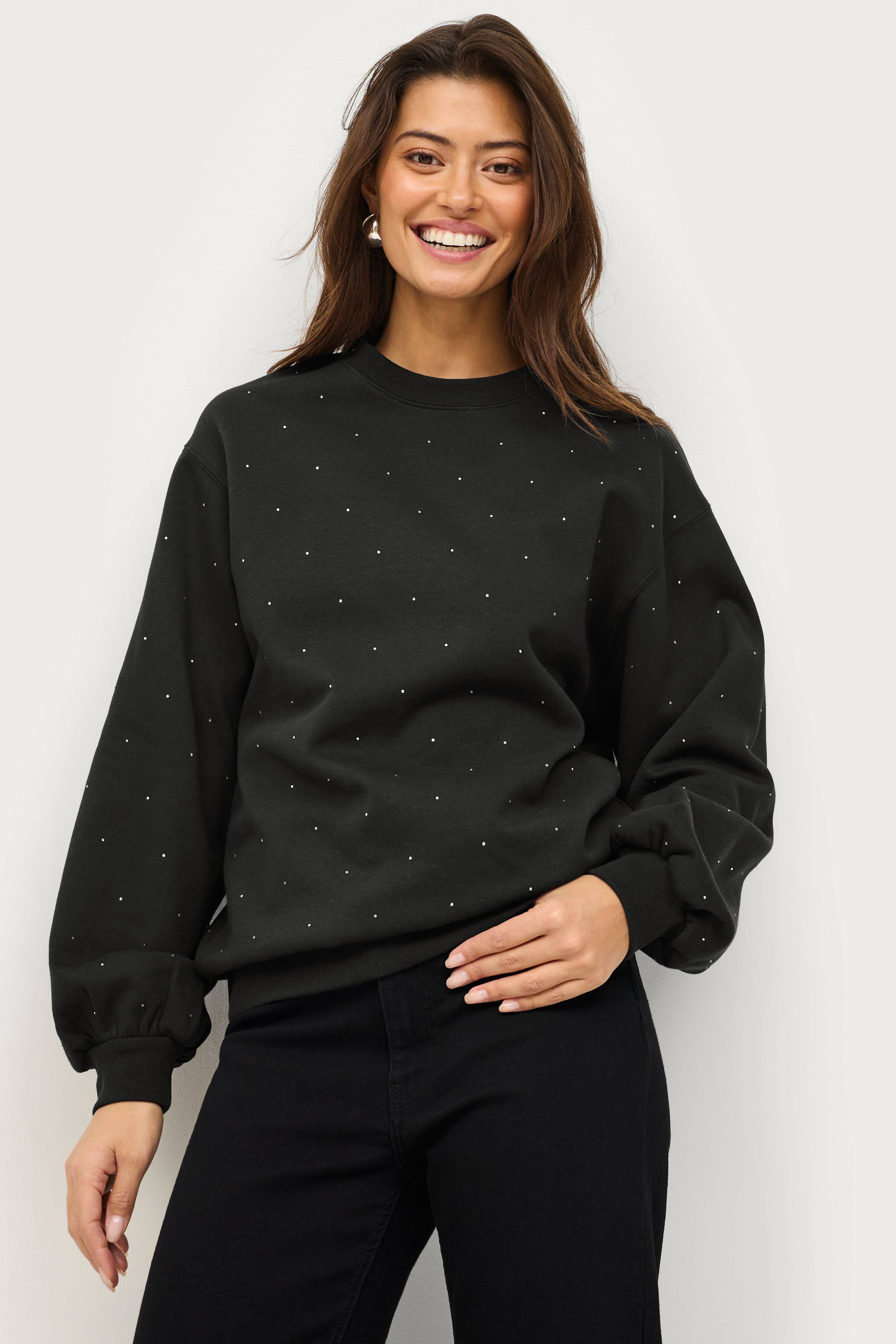 • Oversize model• Dekorativ rhinsten• Ribmanchet ved manchetterne og nederst• Blød, børstet inderside