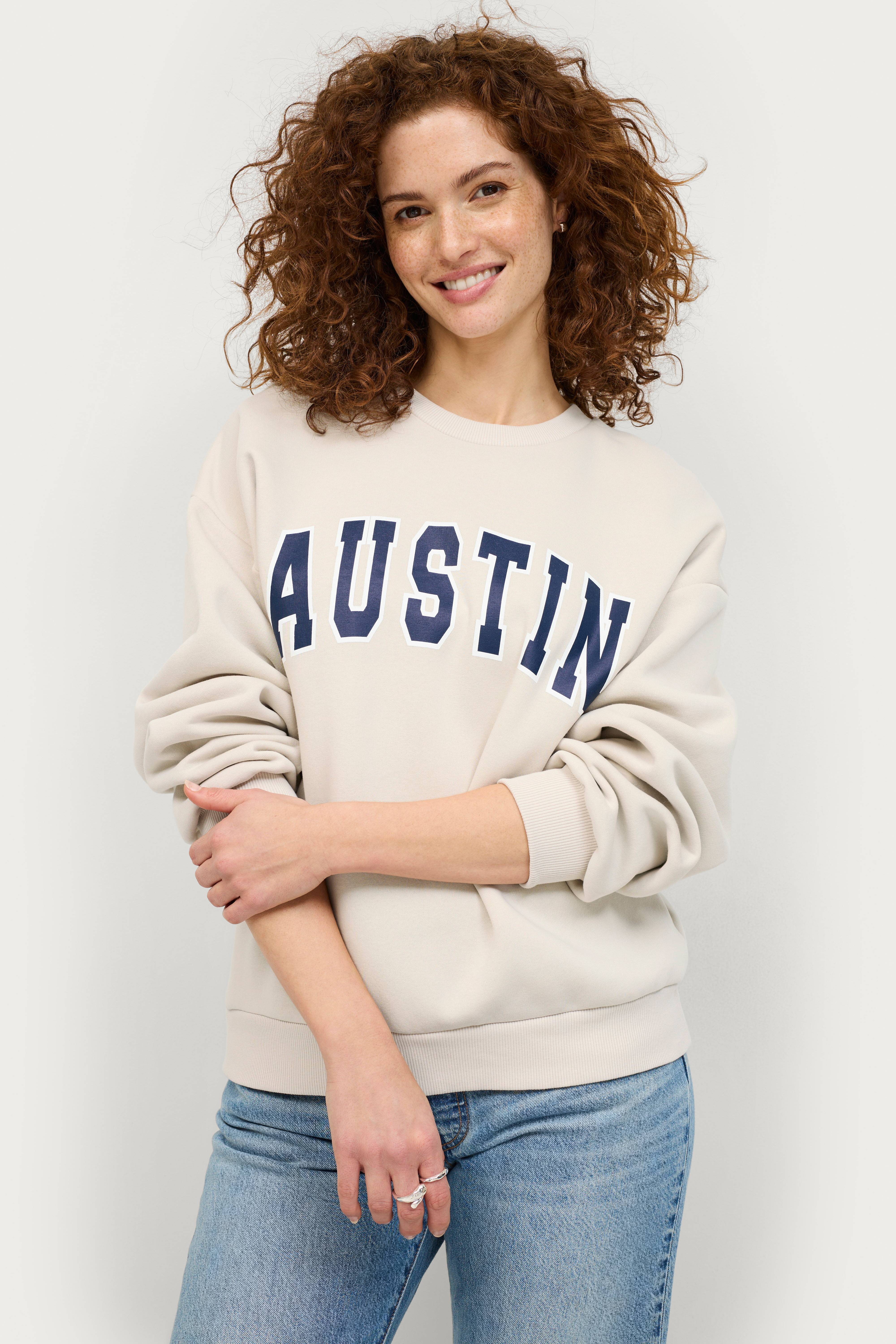 - Lige oversizemodel- Broderier/print foran- Rund hals med rib- Rib i ærmekant og forneden- Børstet inderside