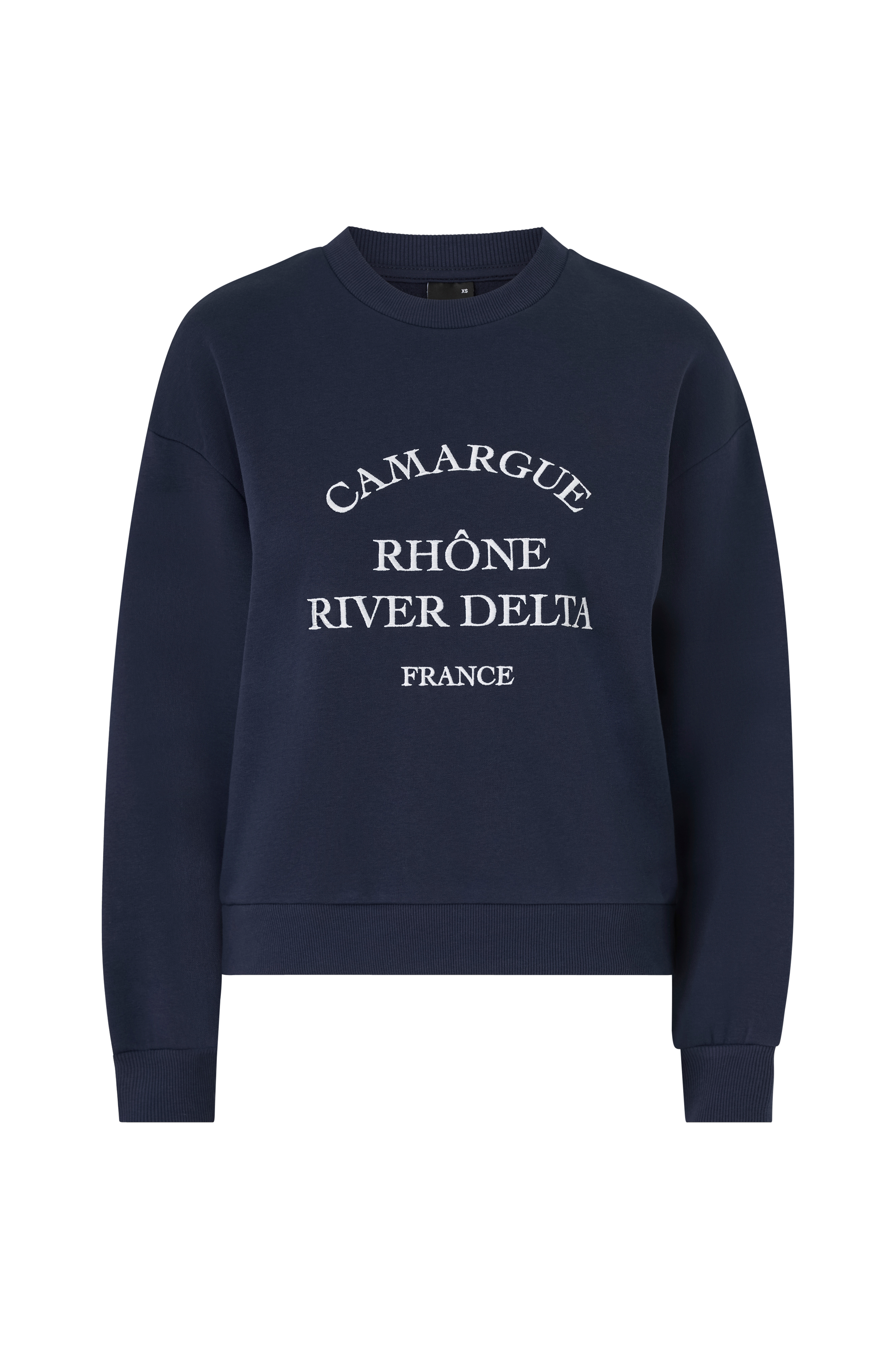 - Lige oversizemodel- Broderier/print foran- Rund hals med rib- Rib i ærmekant og forneden- Børstet inderside