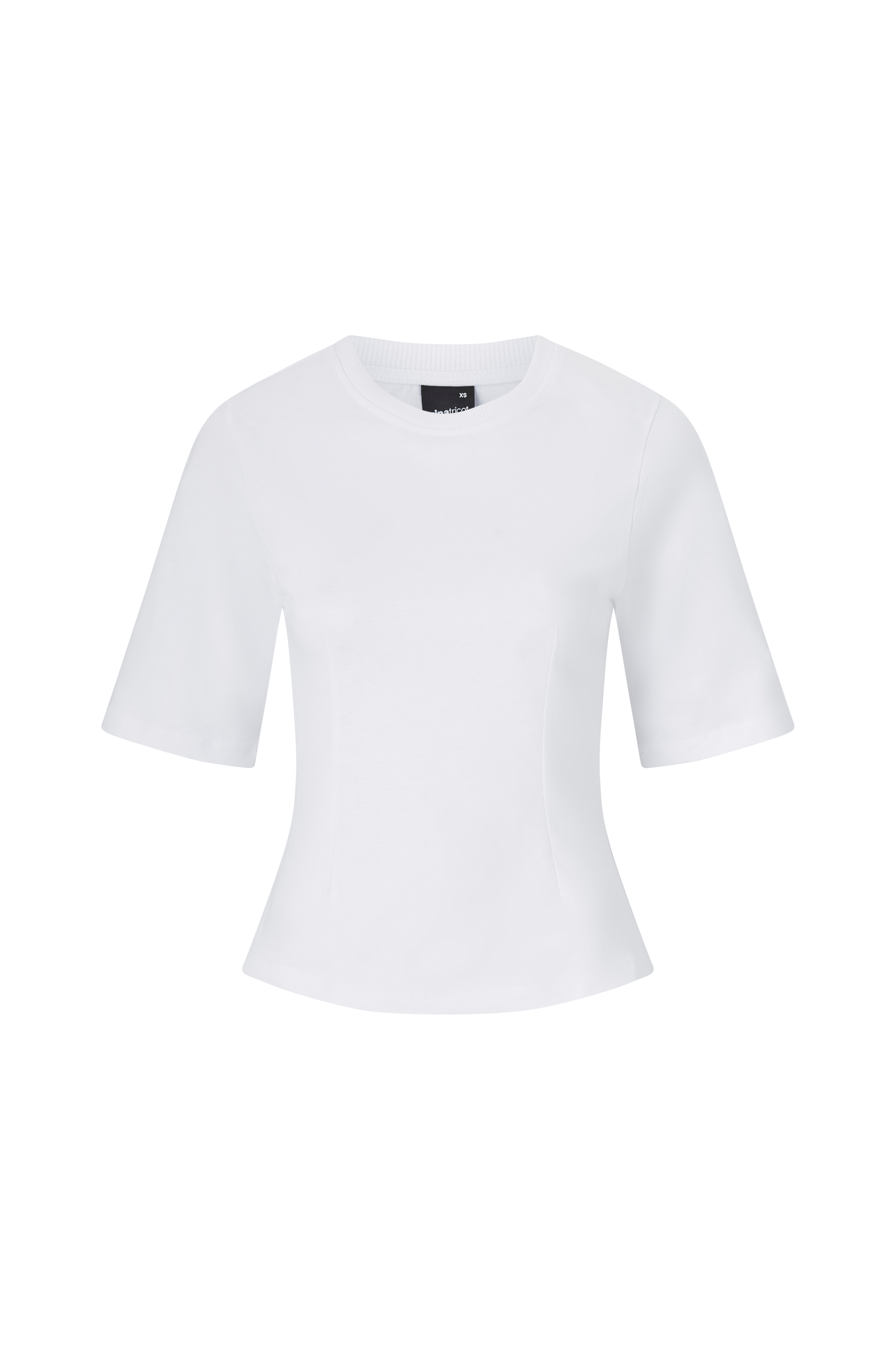 • Kortærmet t-shirt med figursyet pasform• Rund, ribbet halsudskæring• Bølgeformede detaljer foran og bagpå