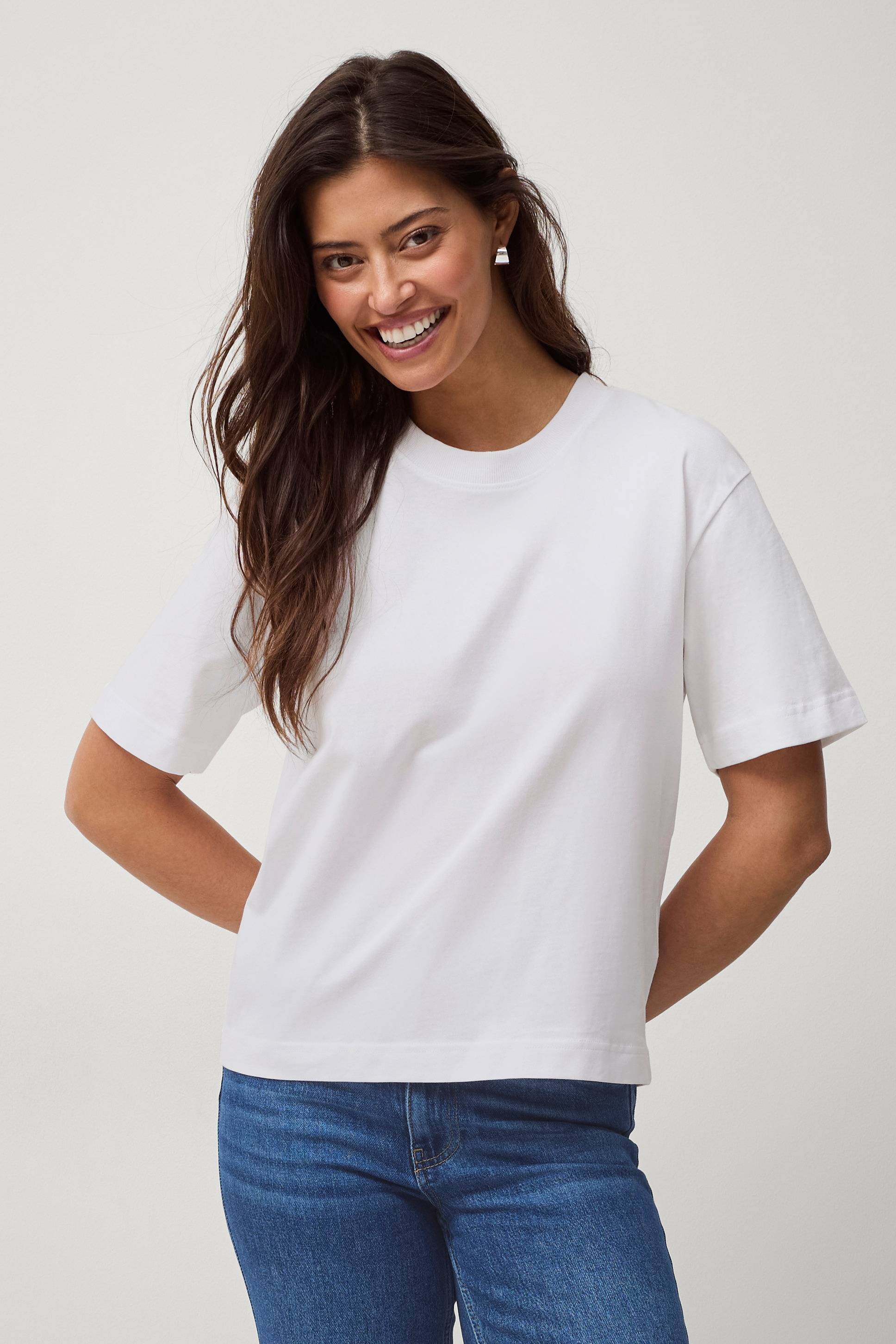 • Korte ærmer• Rund, ribbet halsudskæring• Fremstillet af bomuldsjersey