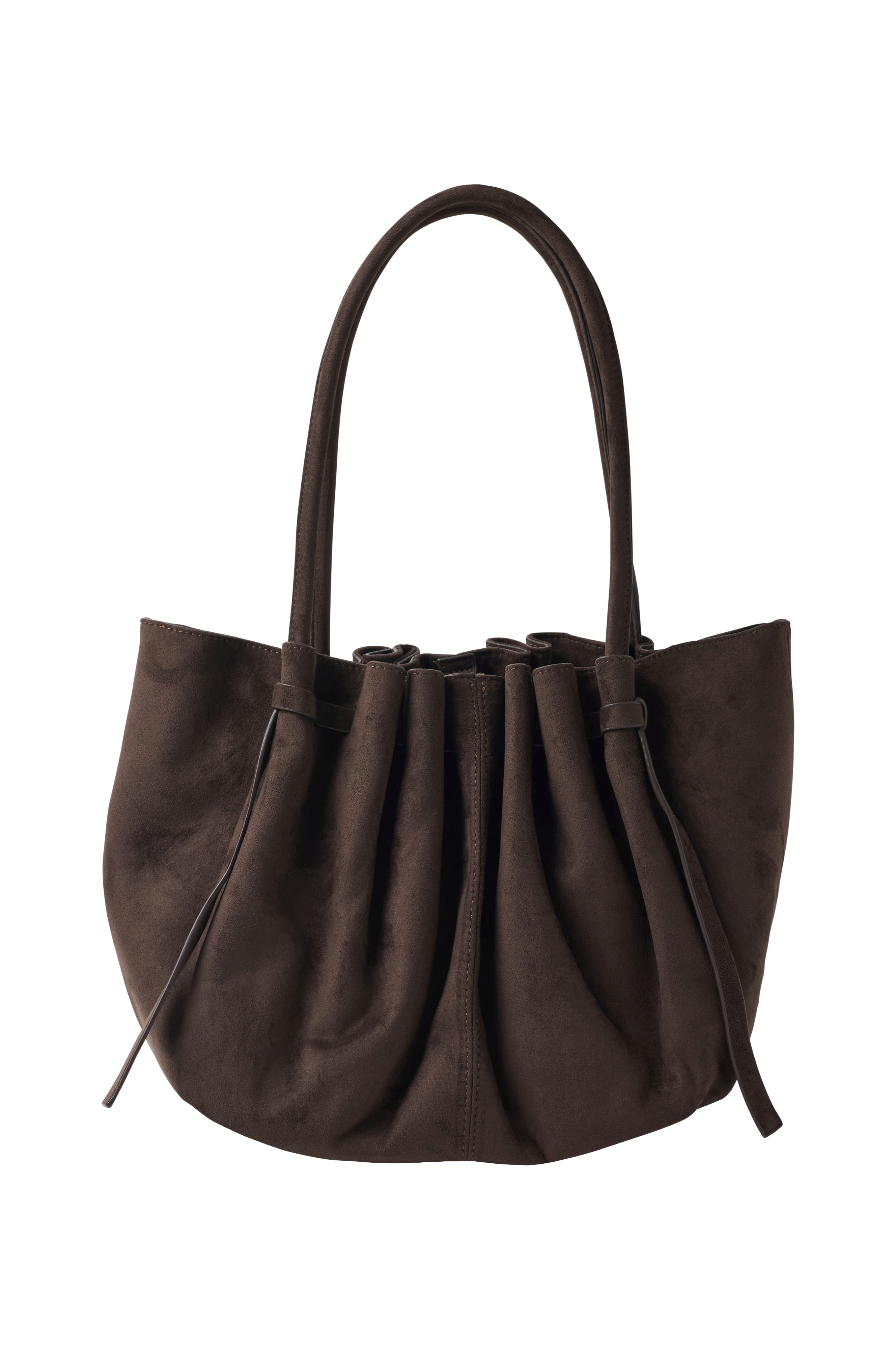 • Taske i ruskindsimitation• To skulderstropper• Hovedrum med magnetknap• En indvendig Rum med lynlås• To åbne inderrum• Tekstilforing
