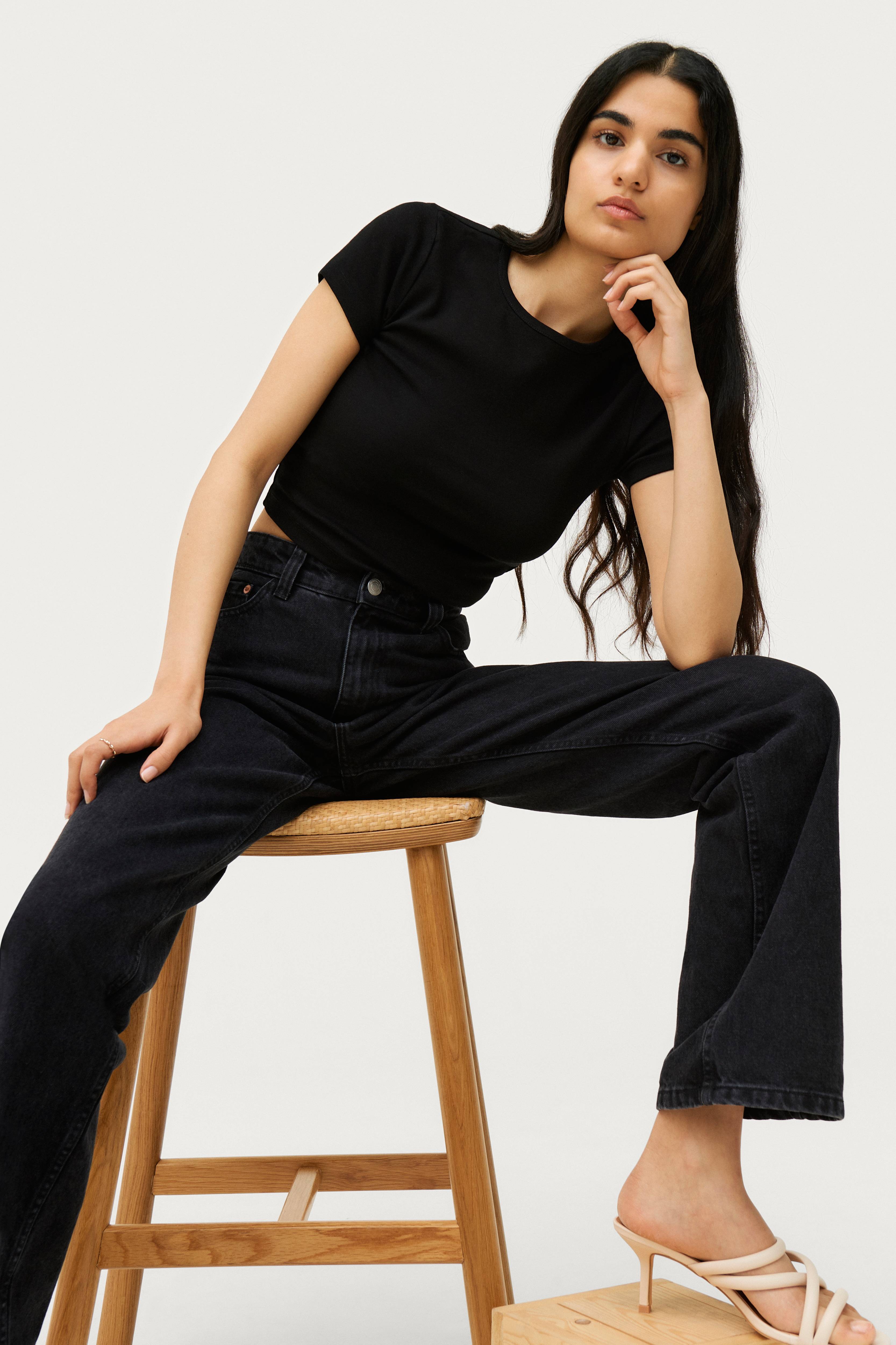 • Figursyet pasform• Croppet længde• Rund halsudskæring