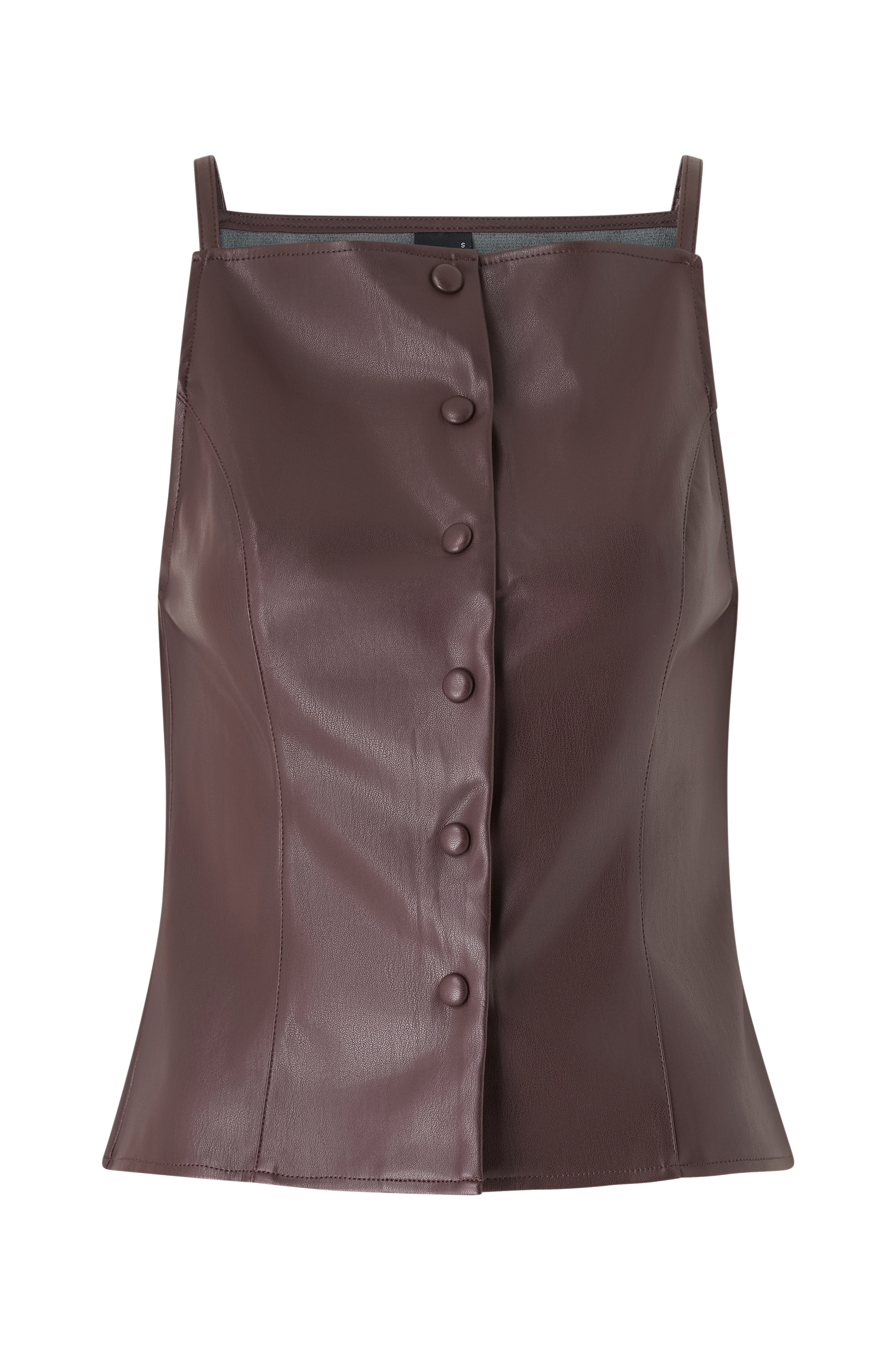 • Ærmeløs top i imiteret læder• Firkantet halsudskæring• Dekorative sømme• Figursyet pasform
