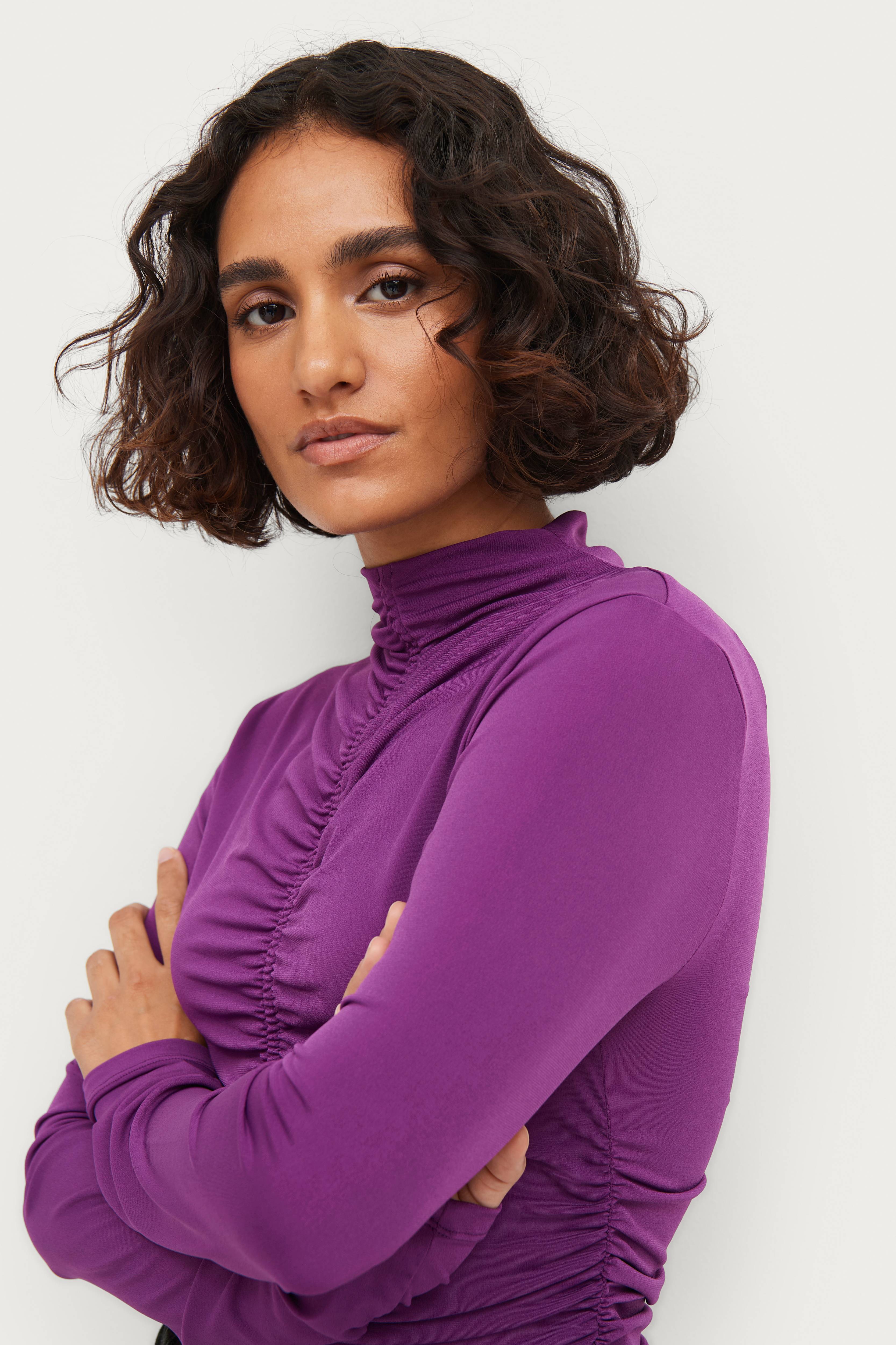 • Figursyet top• Høj halsudskæring• Elastisk drapering foran og bagpå• Lange ærmer• Produktet indeholder genindvundet materiale, som genbruges for at reducere mængden af affald samtidigt med at der ikke anvendes nye ressourcer.