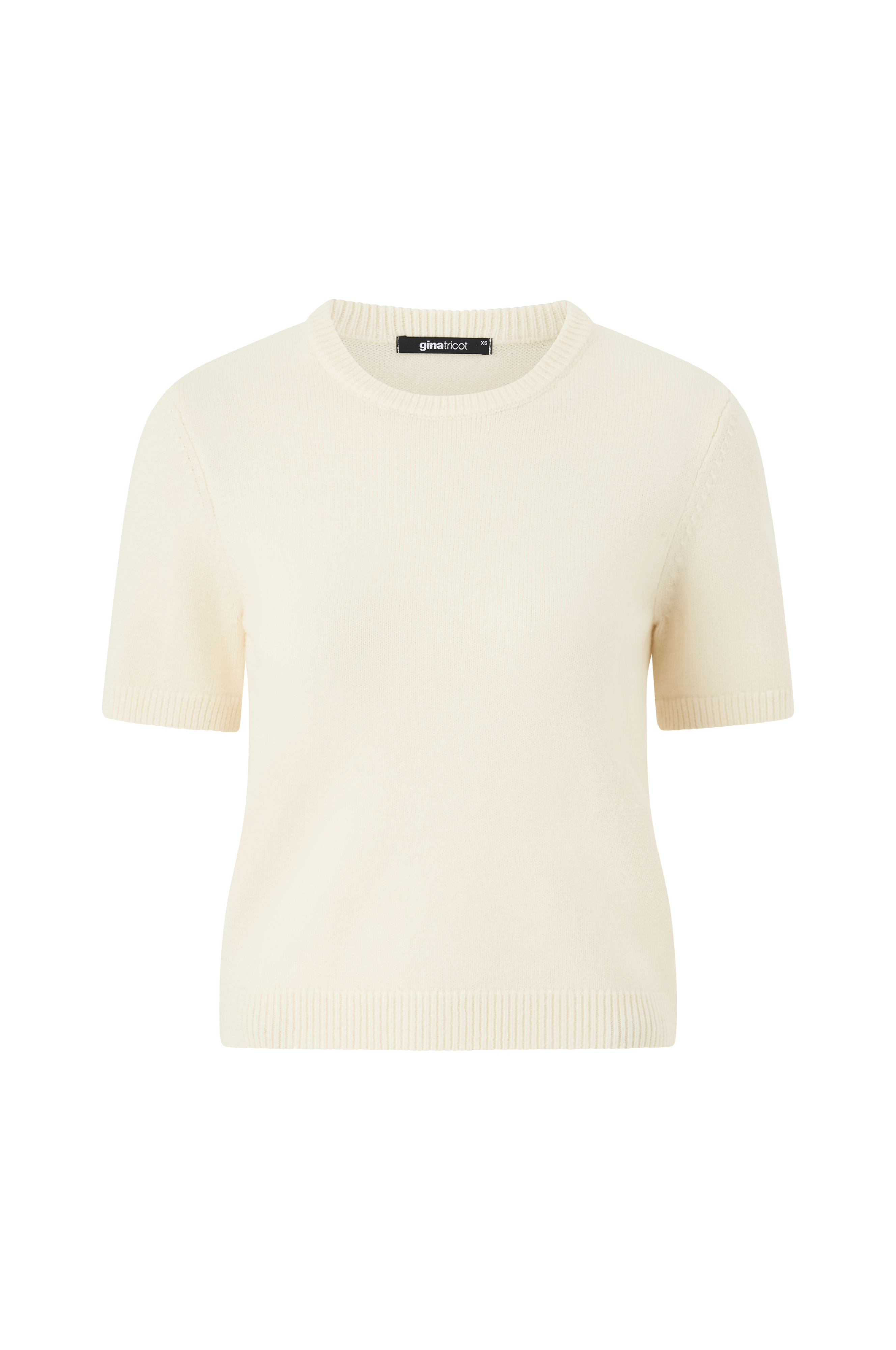 • Fintstrikket top i elastisk, blød Akrylblanding• Korte ærmer med ribstrik ved manchetterne• Afrundet halsudskæring med ribstrik• Ribbet kant nederst
