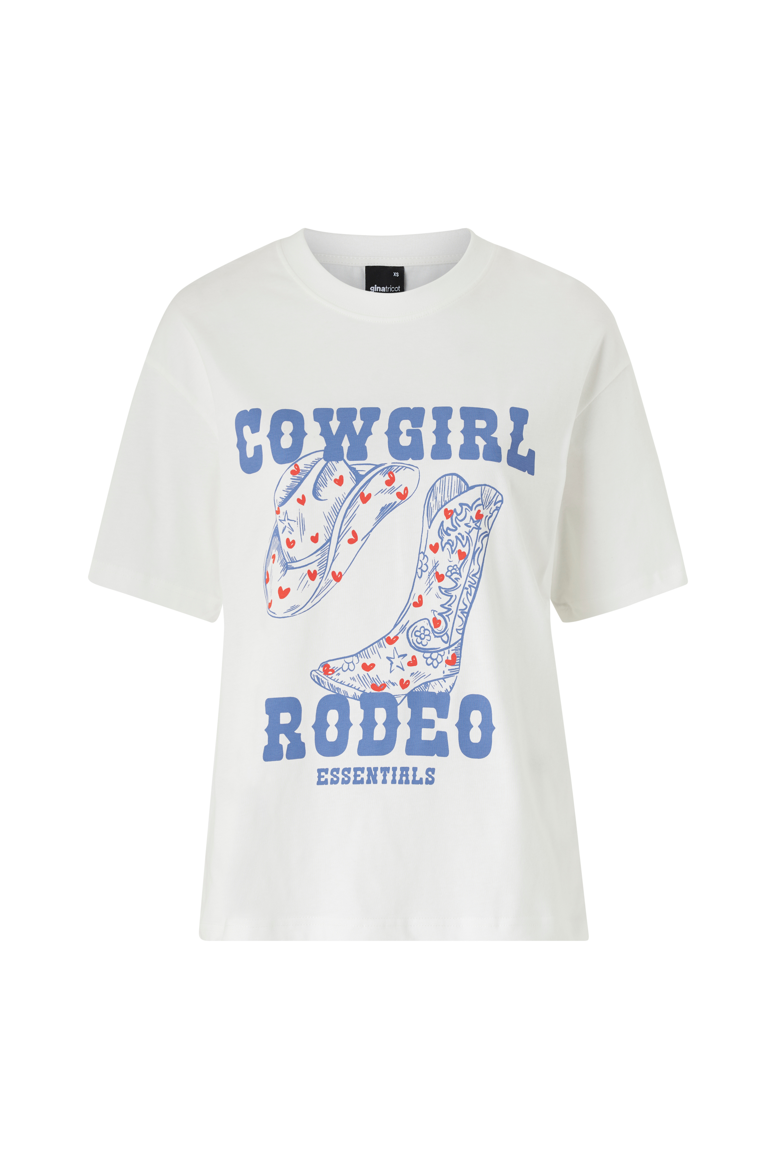 • Bred model• Stort tryk på ryggen• Ribbet rund hals• Kort ærme