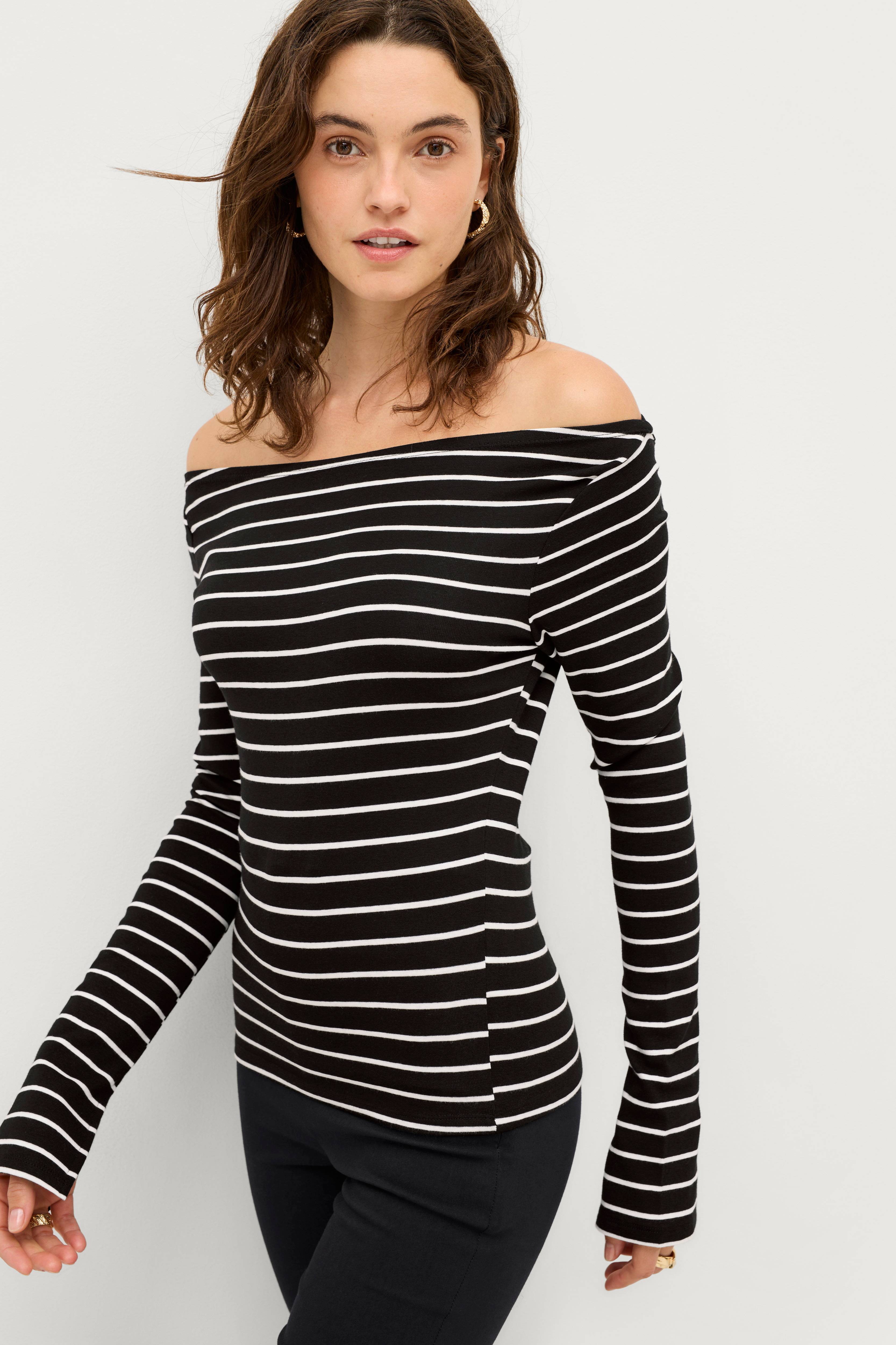• Top i blød jersey• Bådudskæring• Smal pasform• Lange ærmer