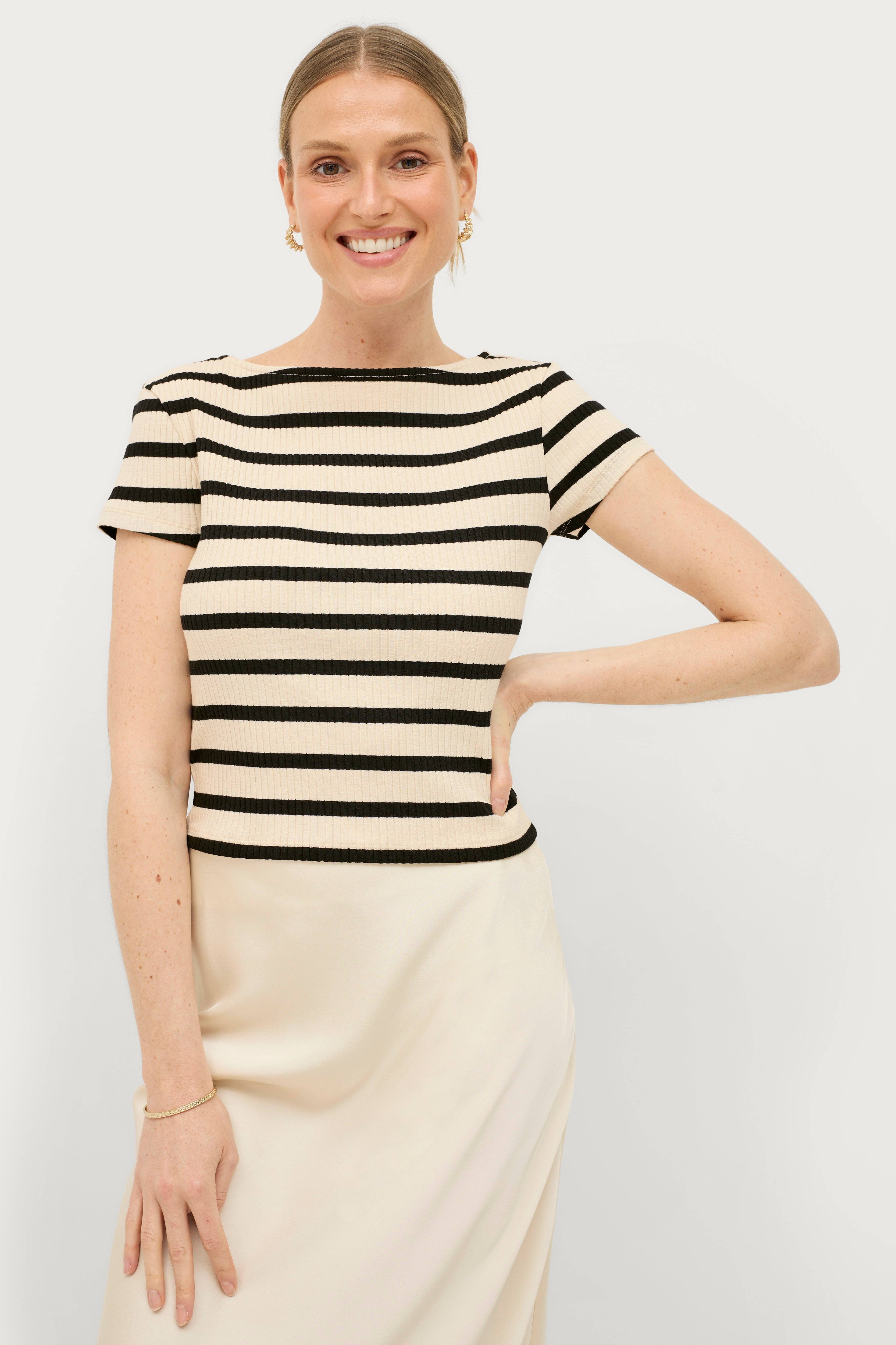 • Ribbet, elastisk jersey• Rund halsudskæring• Figursyet pasform• Kort ærme