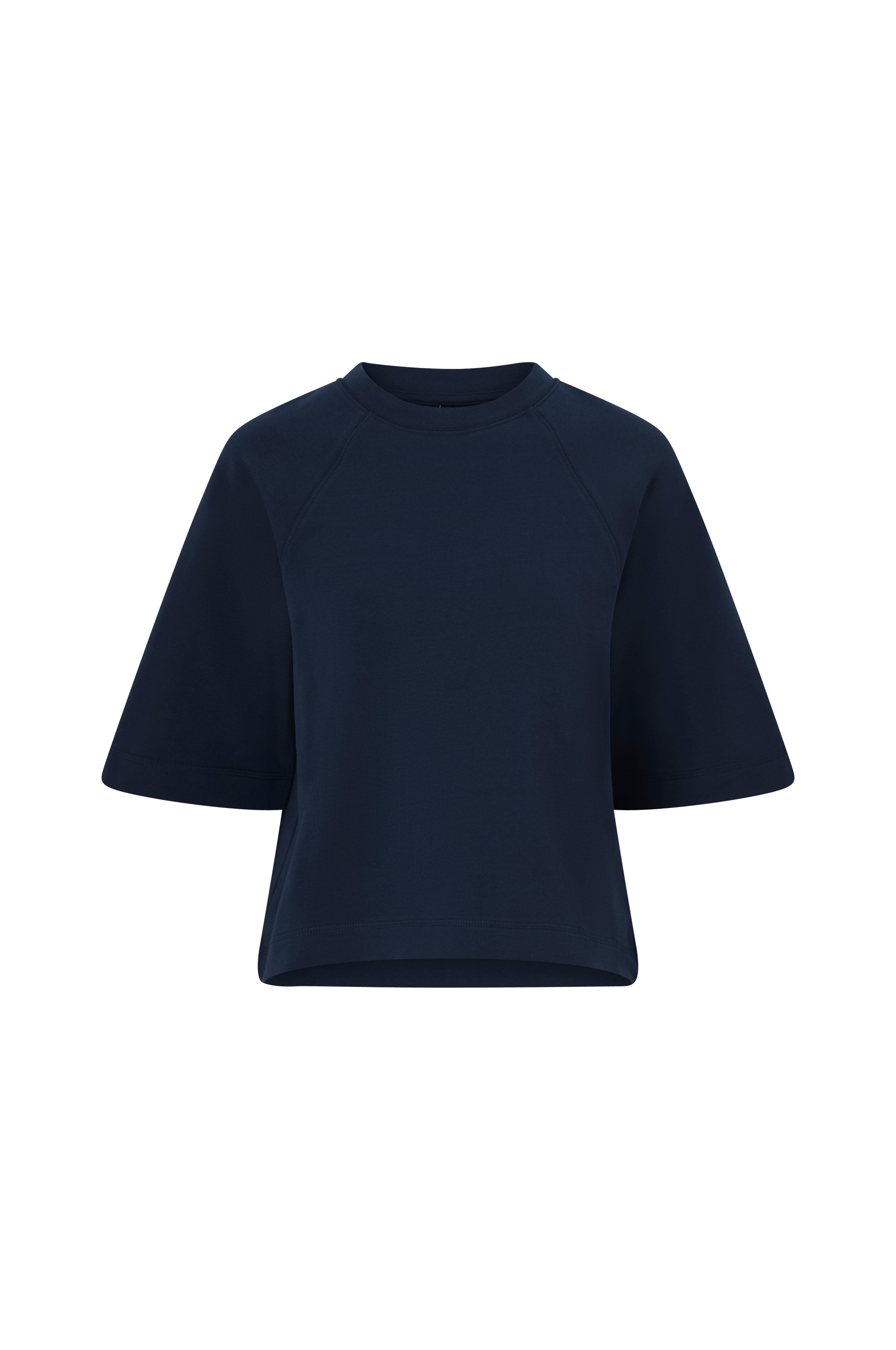 • Top i sweatshirt• Korte raglanærmer• Rund hals• Ribmanchetter ved manchetterne og nederst