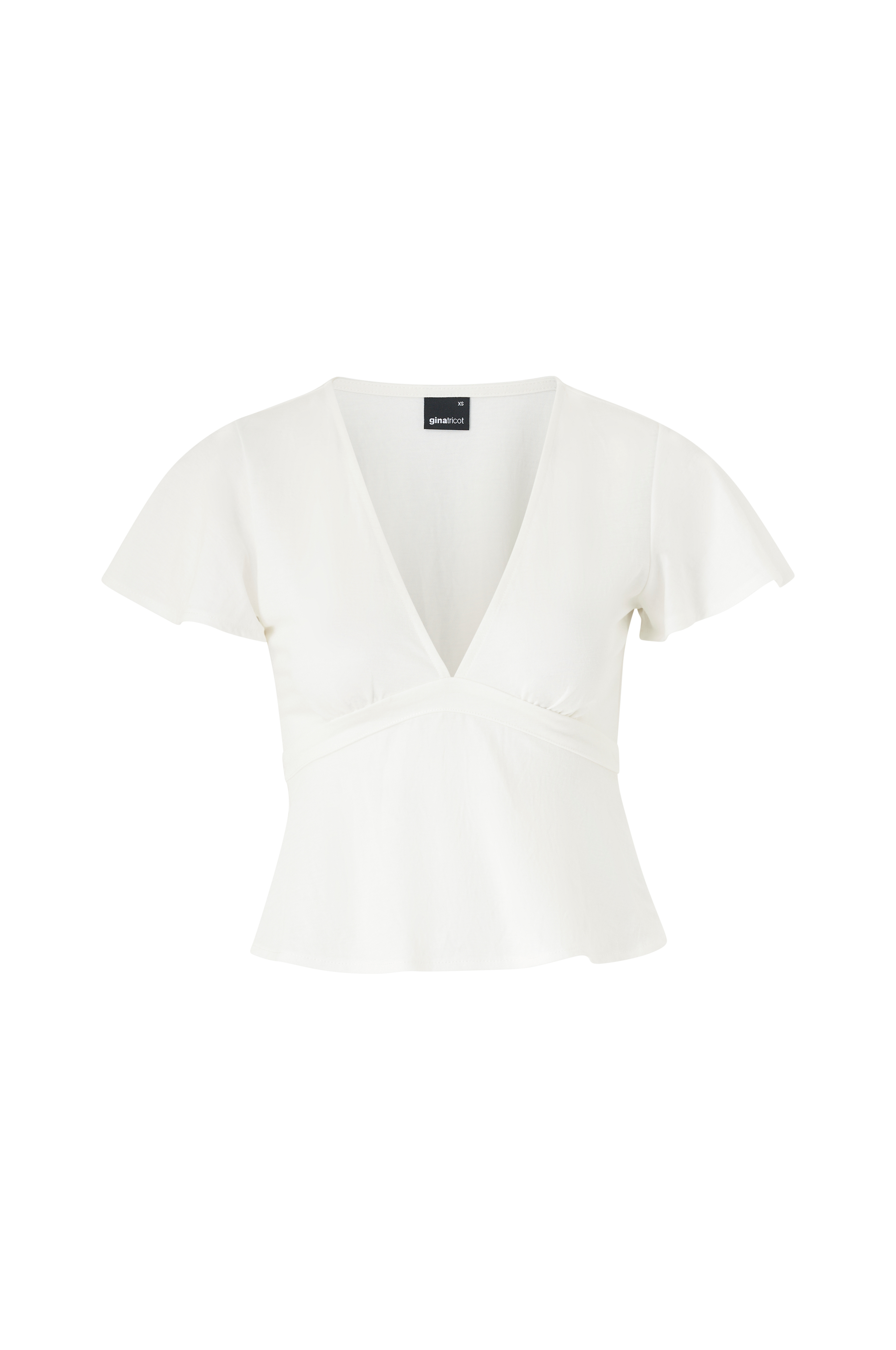 • Figurformede model med bindebånd ved taljen• Dyb v-udskæring• Kort, bredt ærme
