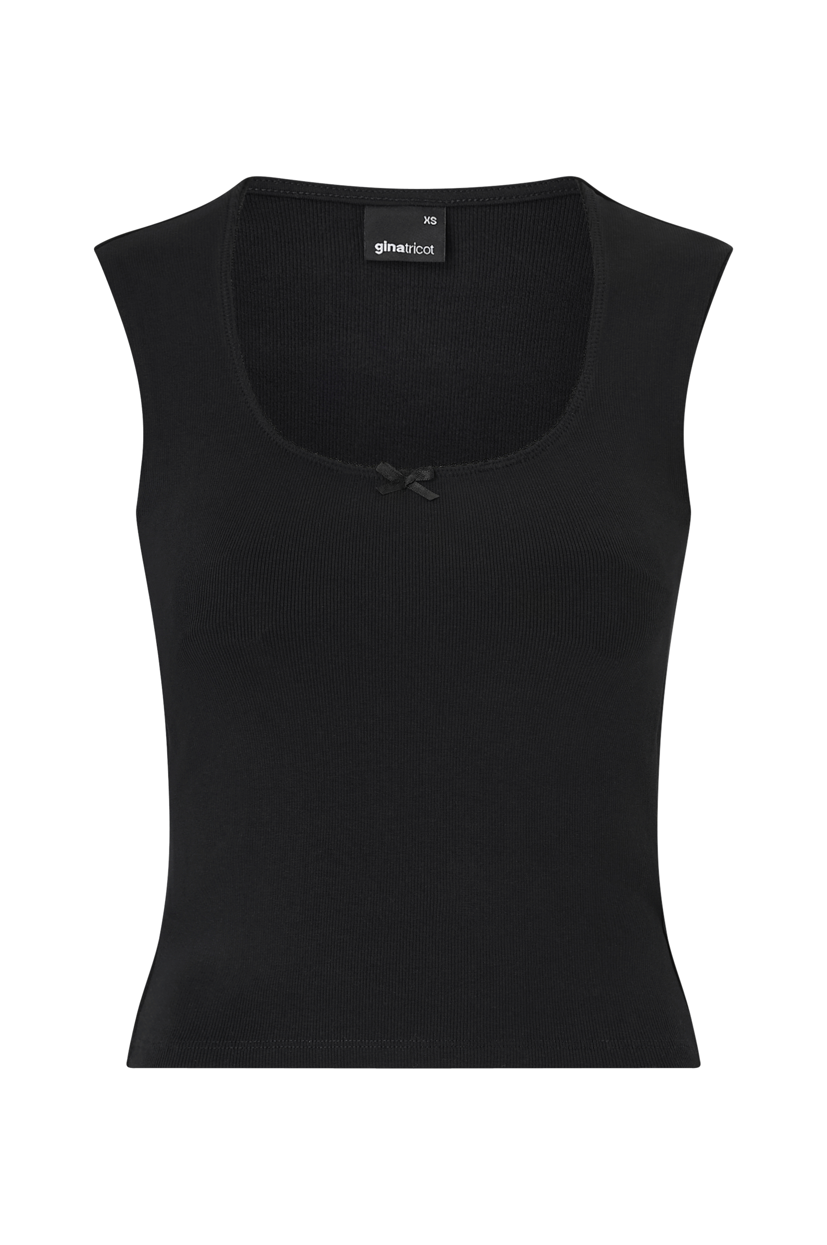 • Ærmeløs top i ribbet, elastisk materiale• Figursyet pasform• Rund hals med lille blondekant• Påsyet, lille bånd foran