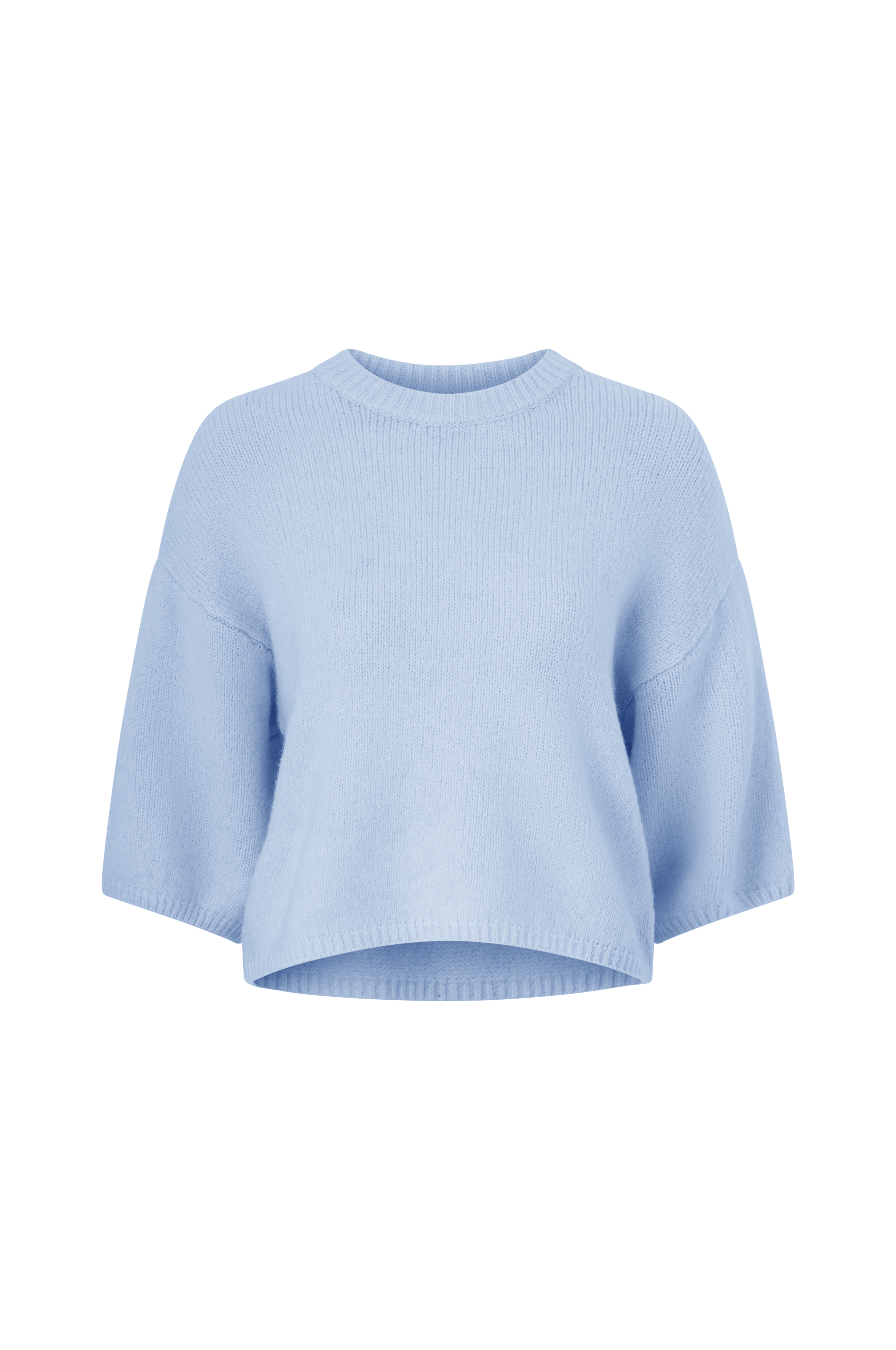• Strikket trøje med oversize pasform• Rund halsudskæring• Nedsænkede skuldre• 3/4 lange ballonærmer• Ribstrik ved manchetterne og nederst