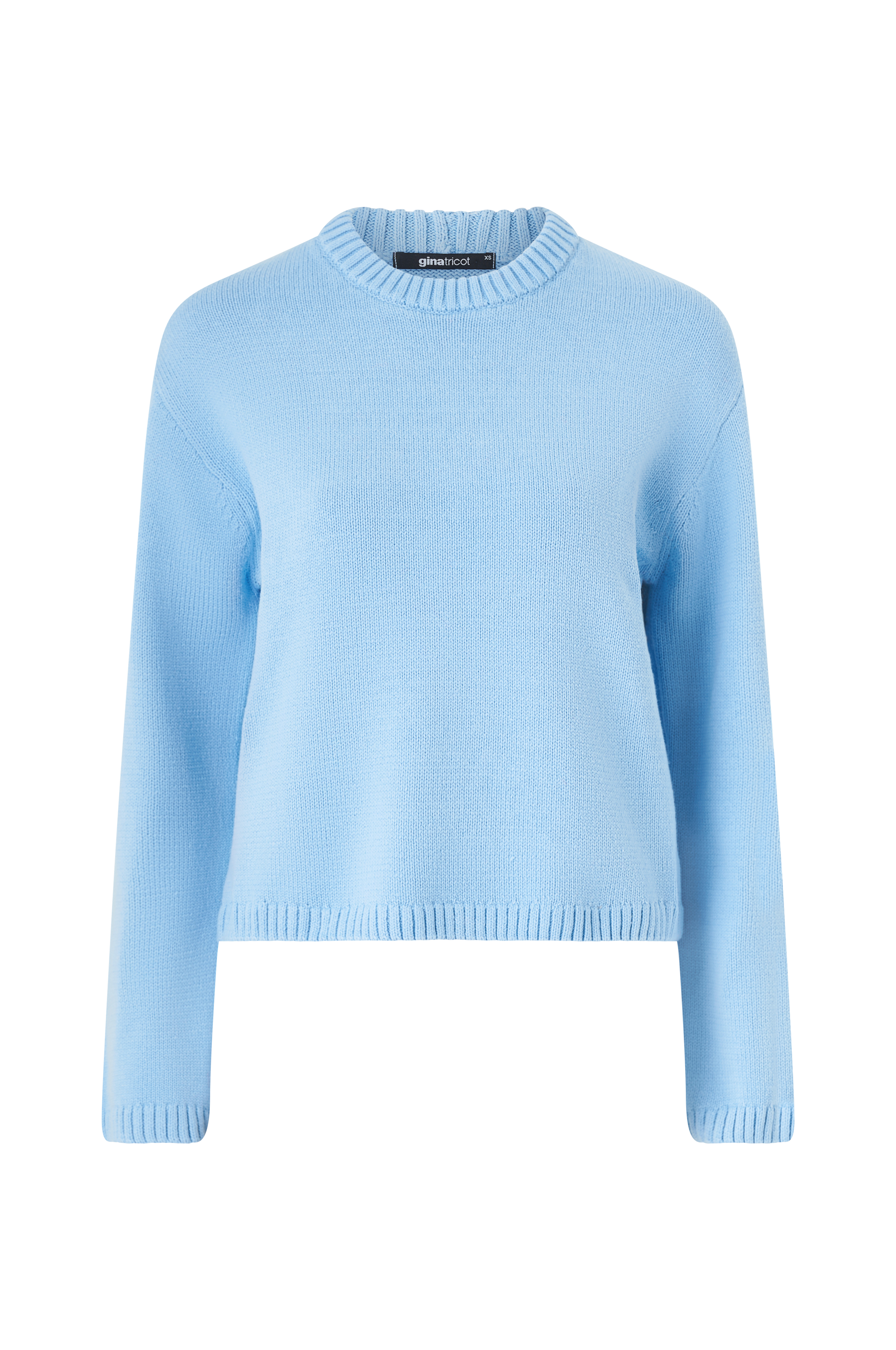 • Strikket trøje• Rund halsudskæring• Nedsænkede skuldre• Ribstrik ved manchetterne og nederst