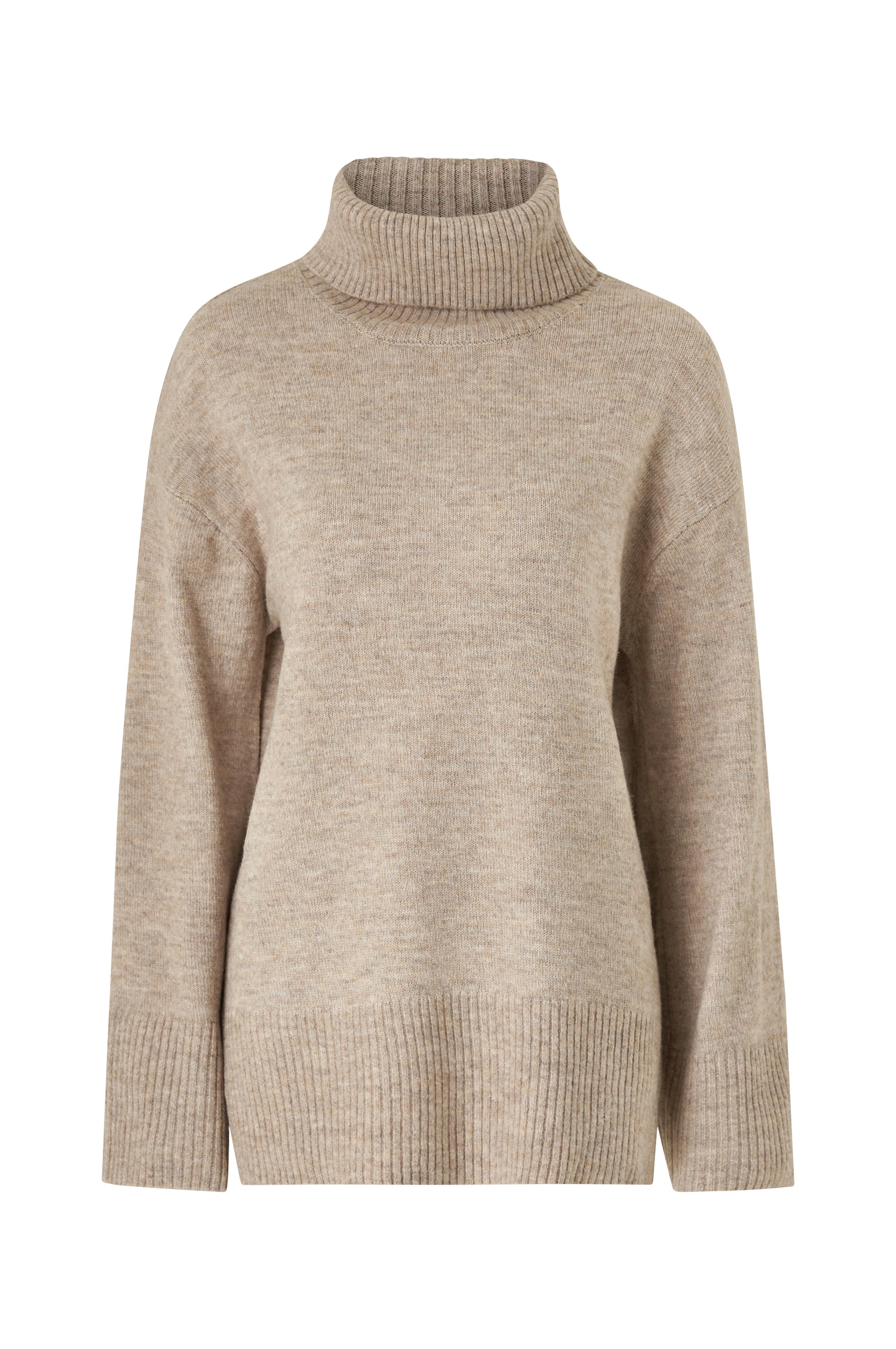 • Strikket trøje med firkantet pasform• Ribstrikket turtleneck• Lange raglanærmer• Slidser i siderne• Ribstrik ved manchetterne og ved nederste kant