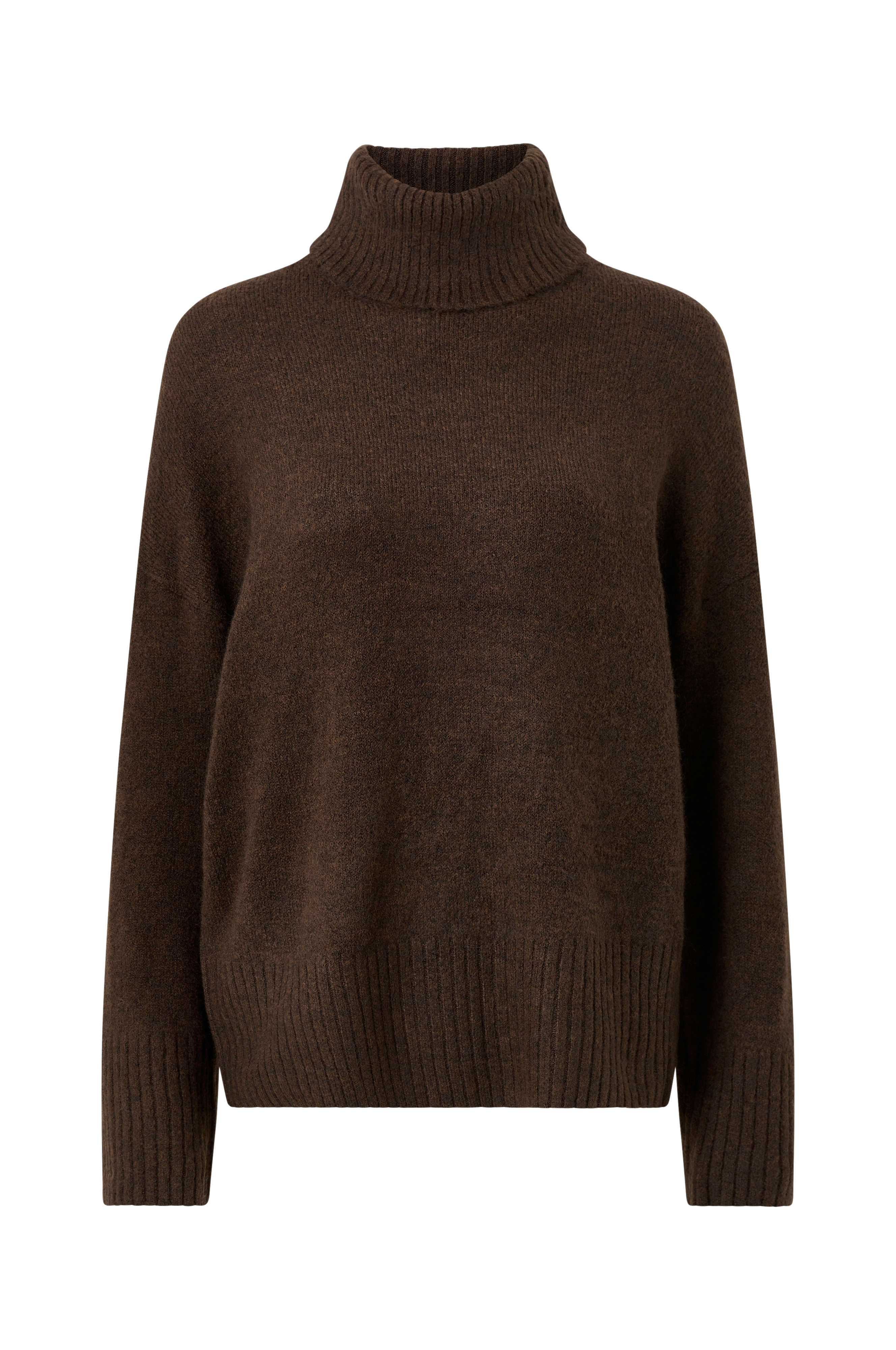 • Blød, strikket trøje med turtleneck• Bred ribstrik ved manchetterne og ved nederste kant• Nedsænkede skuldre• Afslappet pasform