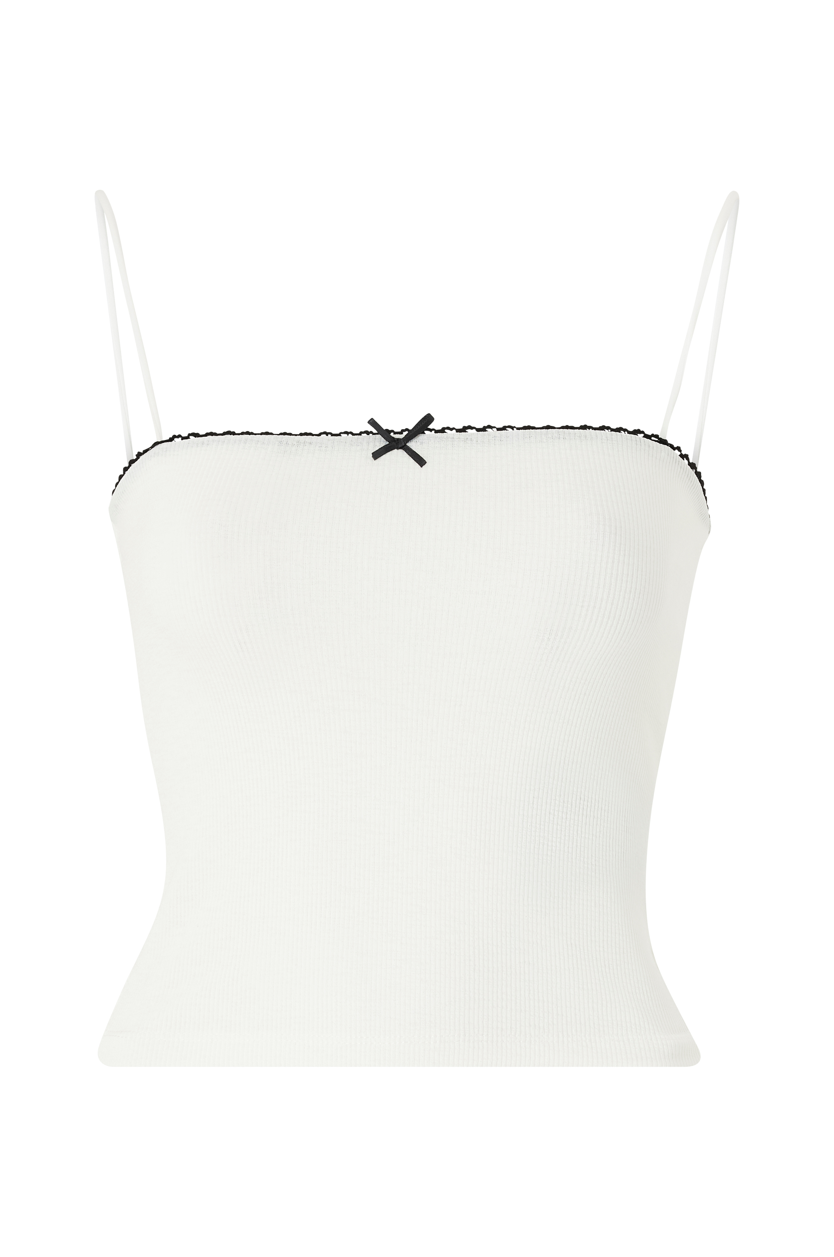 • Ribstrikket model• Matchende blondekant øverst• Tynde skulderstropper i chiffon