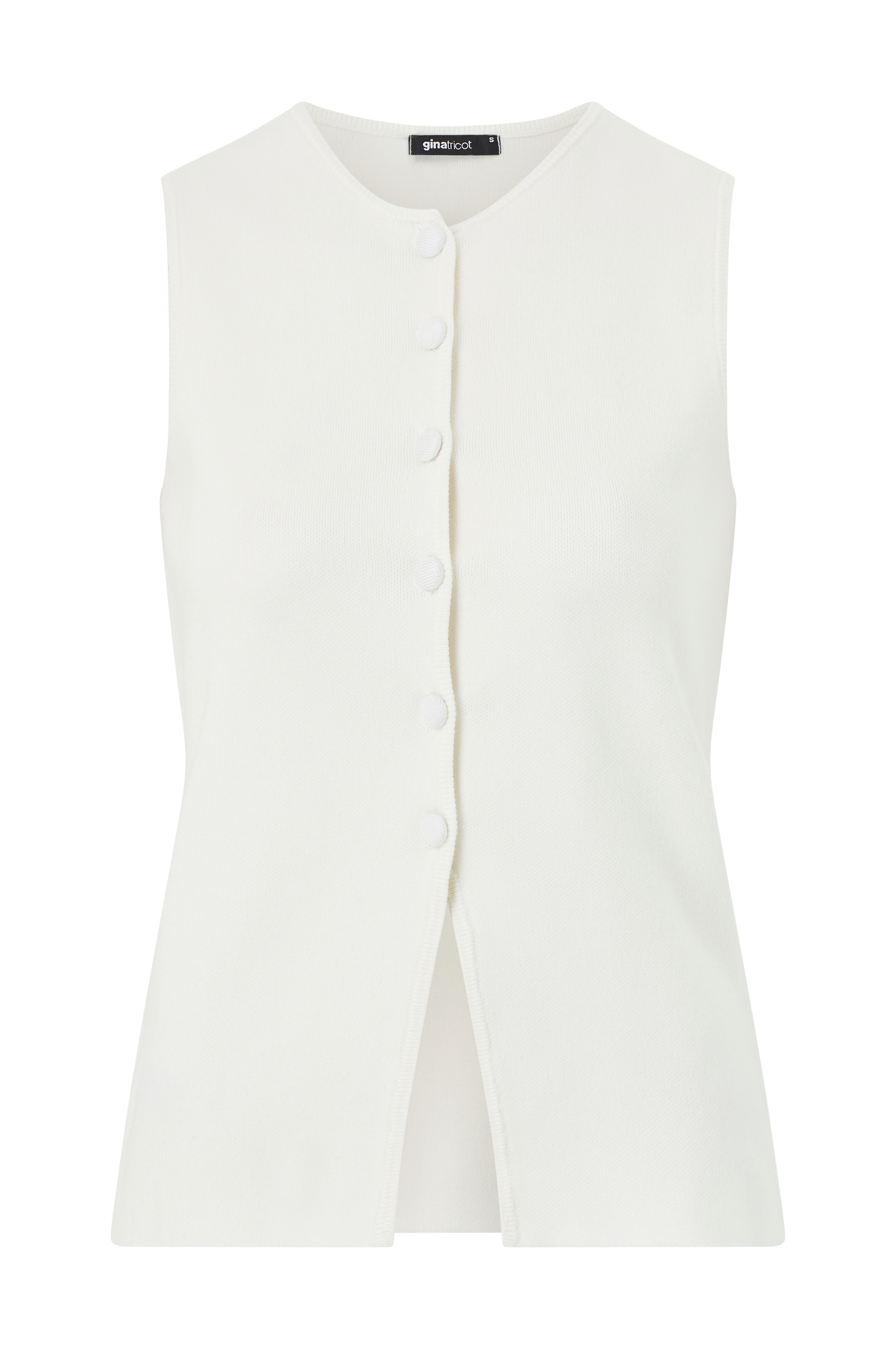• Let figurformet model• Beklædte knapper• Smalle, ribstrikkede kanter