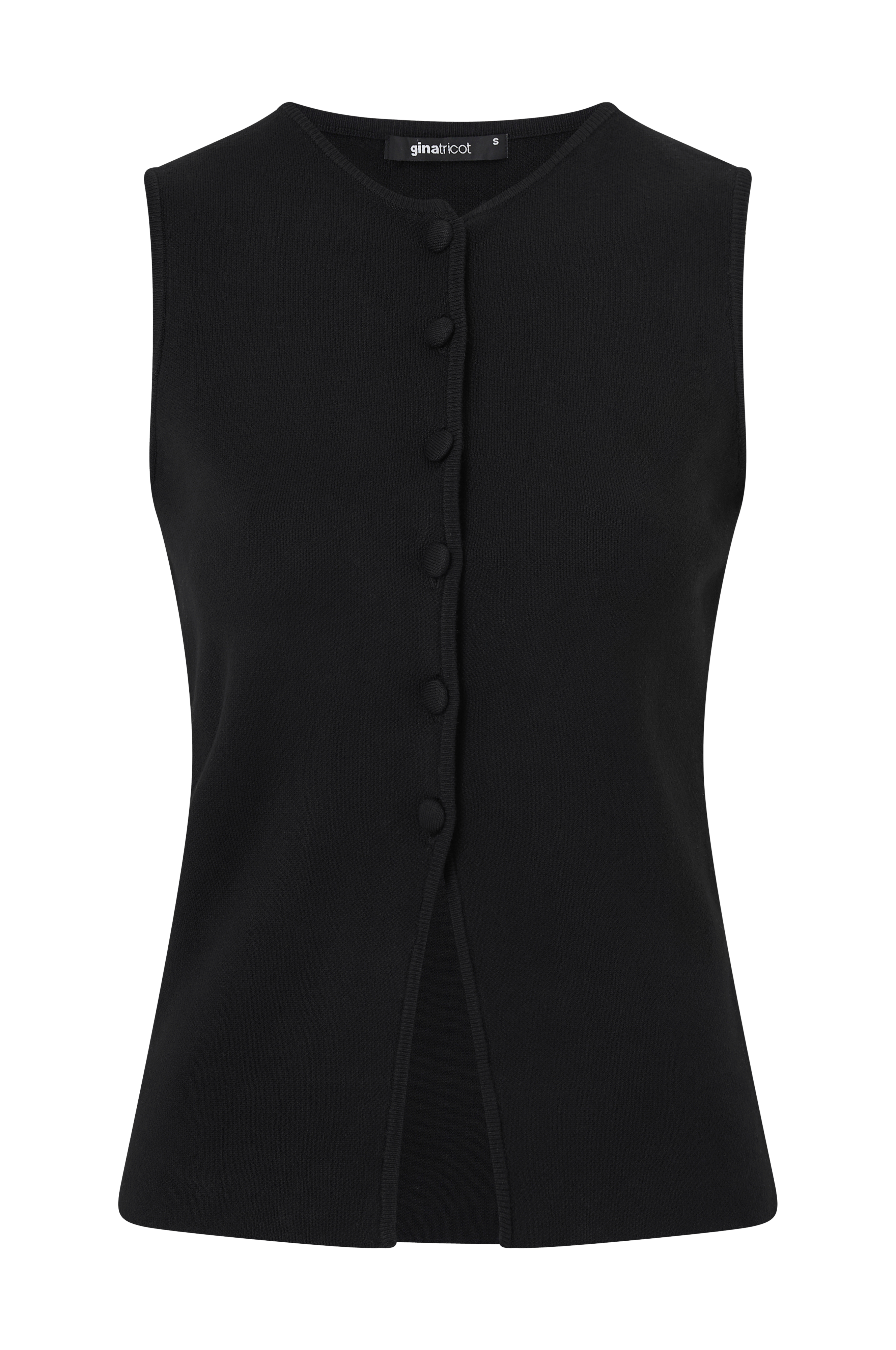 • Let figurformet model• Beklædte knapper• Smalle, ribstrikkede kanter