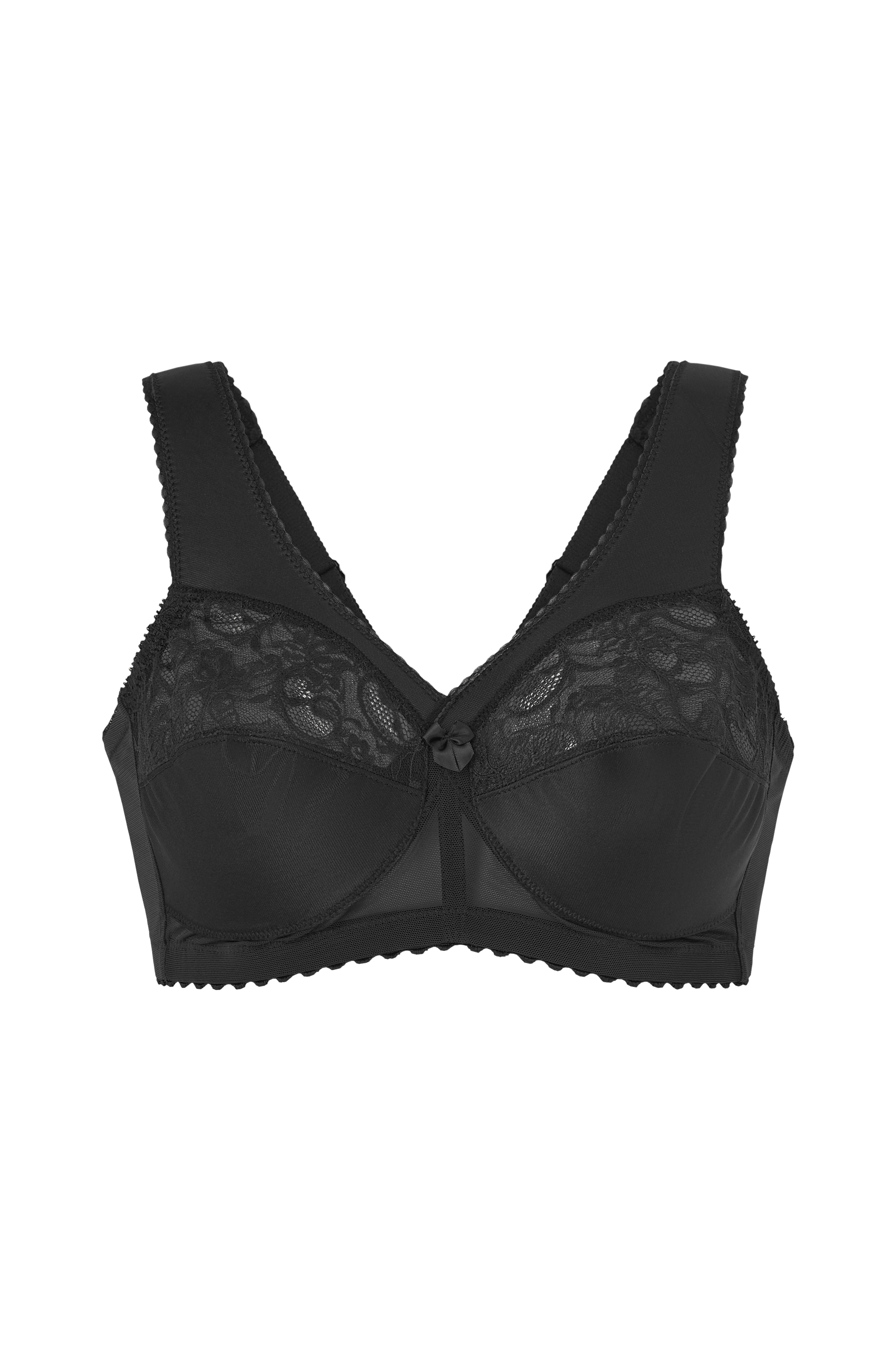 • Skåle uden bøjle med blonde• Blød elastik nederst• Meshdetalje foran• Brede, forede skulderstropper• Hægtelukning i ryggen• Design, der løfter, former og støtter