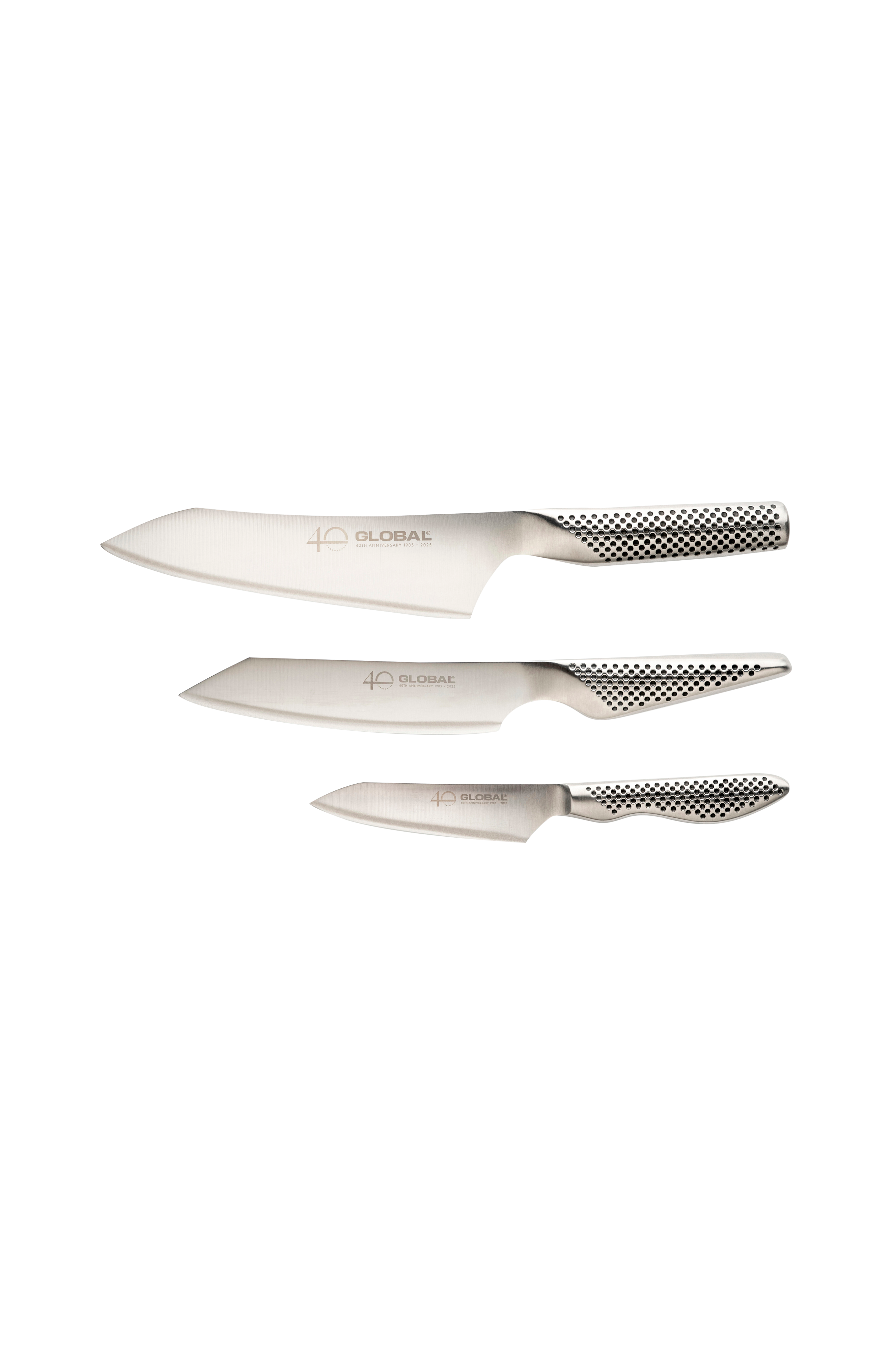 Dette knivsæt i 3 dele består af en kiritsuke på 15 cm, en kokkekniv på 18 cm og en universalkniv på 11 cm.
