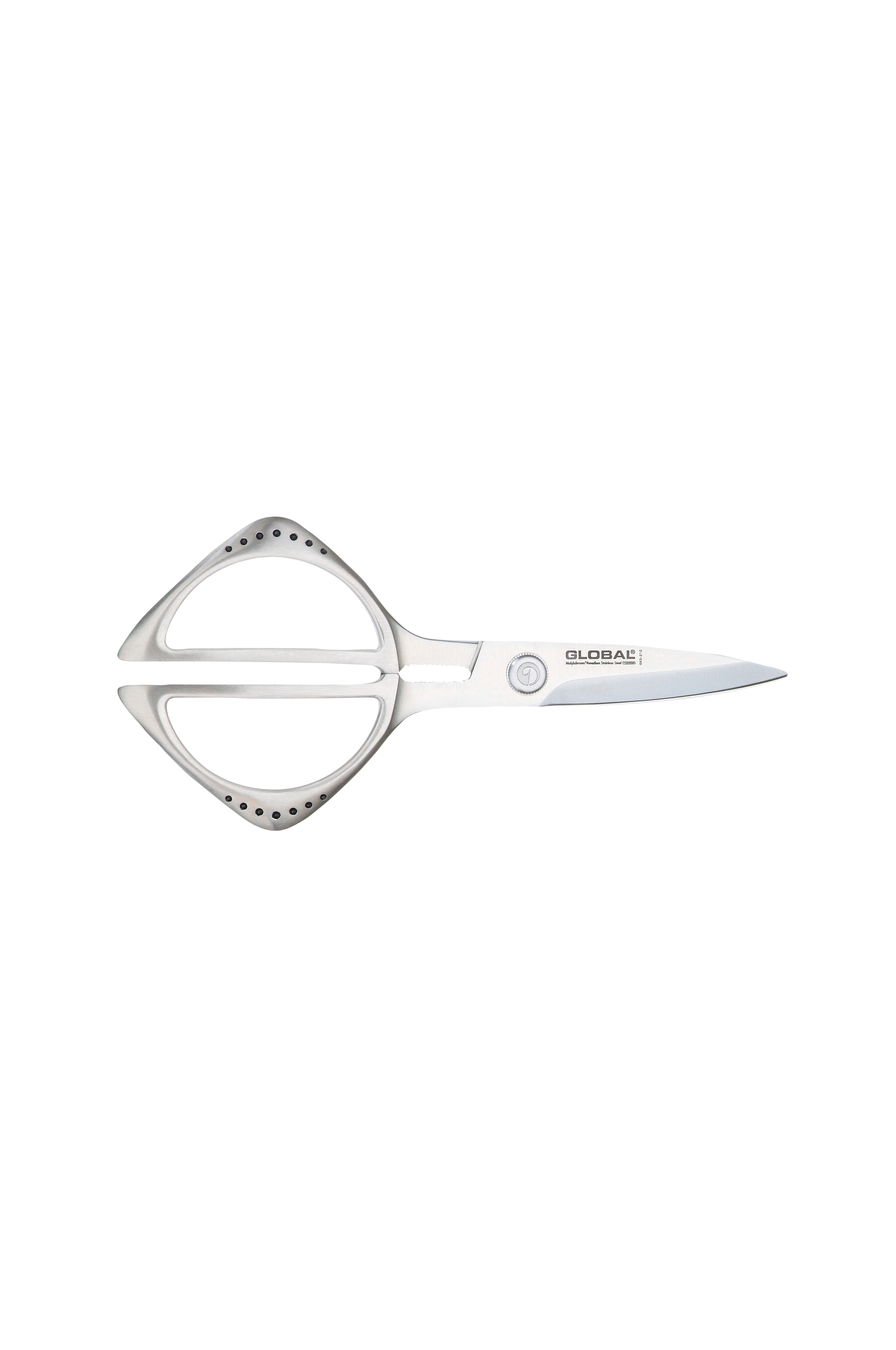 Globals køkkensaks er udstyret med en række smarte funktioner. Den har for eksempel en klo, som du kan bruge til at knække nødder eller krebs. Håndtaget tilspidser også til en kile for at hjælpe dig med at lirke dåser op, der er svære at åbne. Saksens klinge har en mikrotandet kant, der giver et perfekt snit, når du klipper. Du kan nemt justere klingen med en skrue.