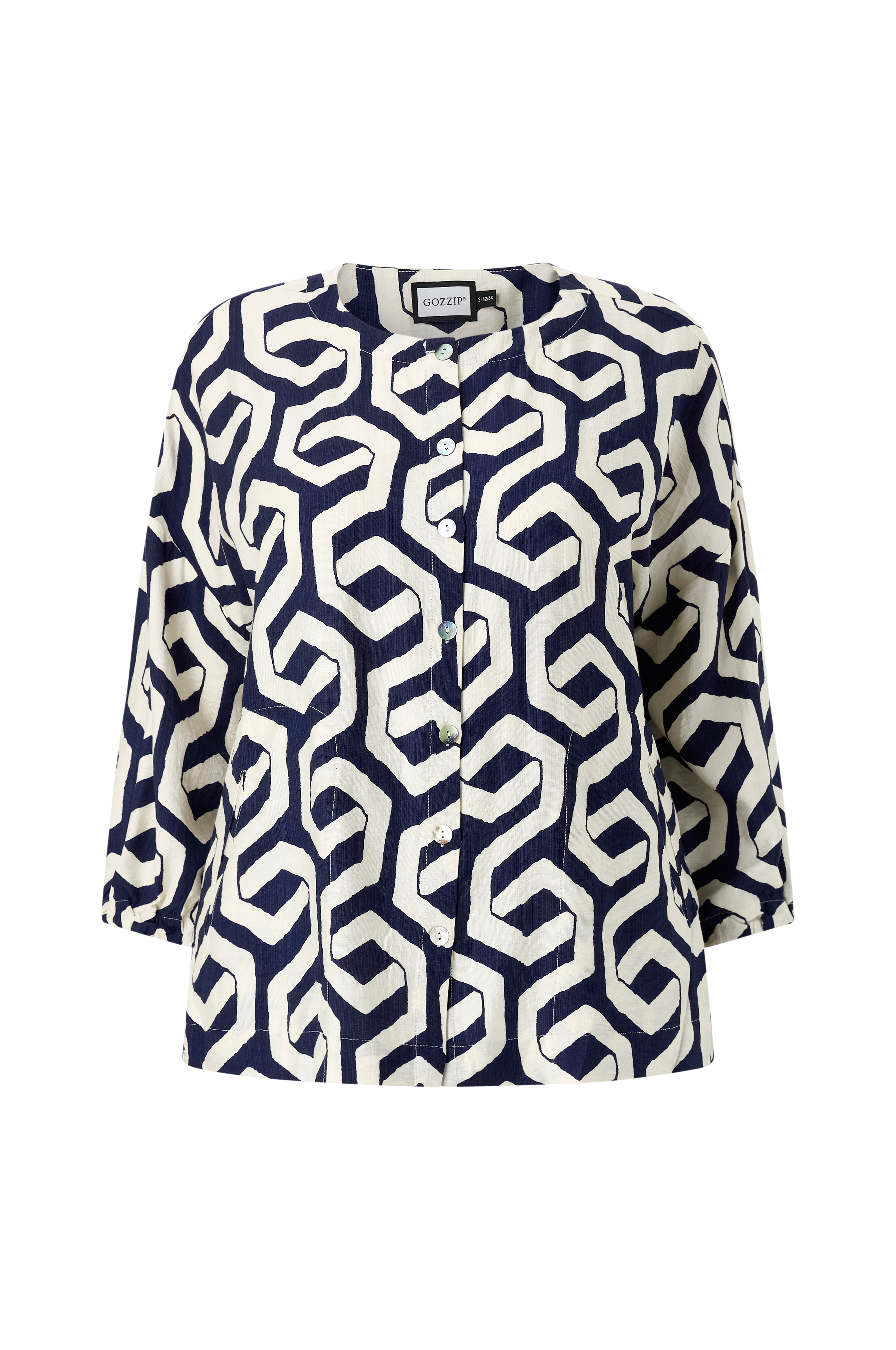 • Bluse med rund halsudskæring• Knapper foran• 3/4 lange ærmer med elastik ved manchetterne• Forlommer• Plusstørrelser