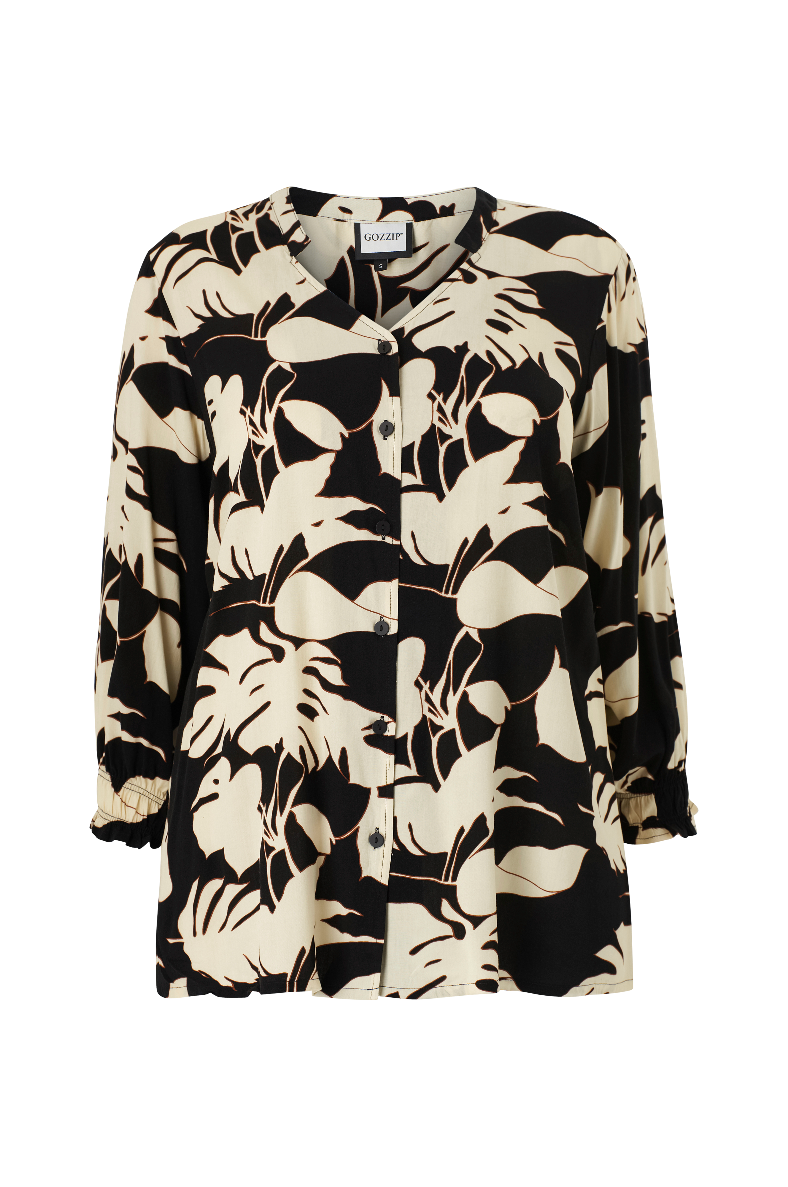 • Store størrelser• Lige model i blød viskose• Rund hals med v-udskæring foran og knapper hele vejen ned• Langt ærme med elastiksømme nederst