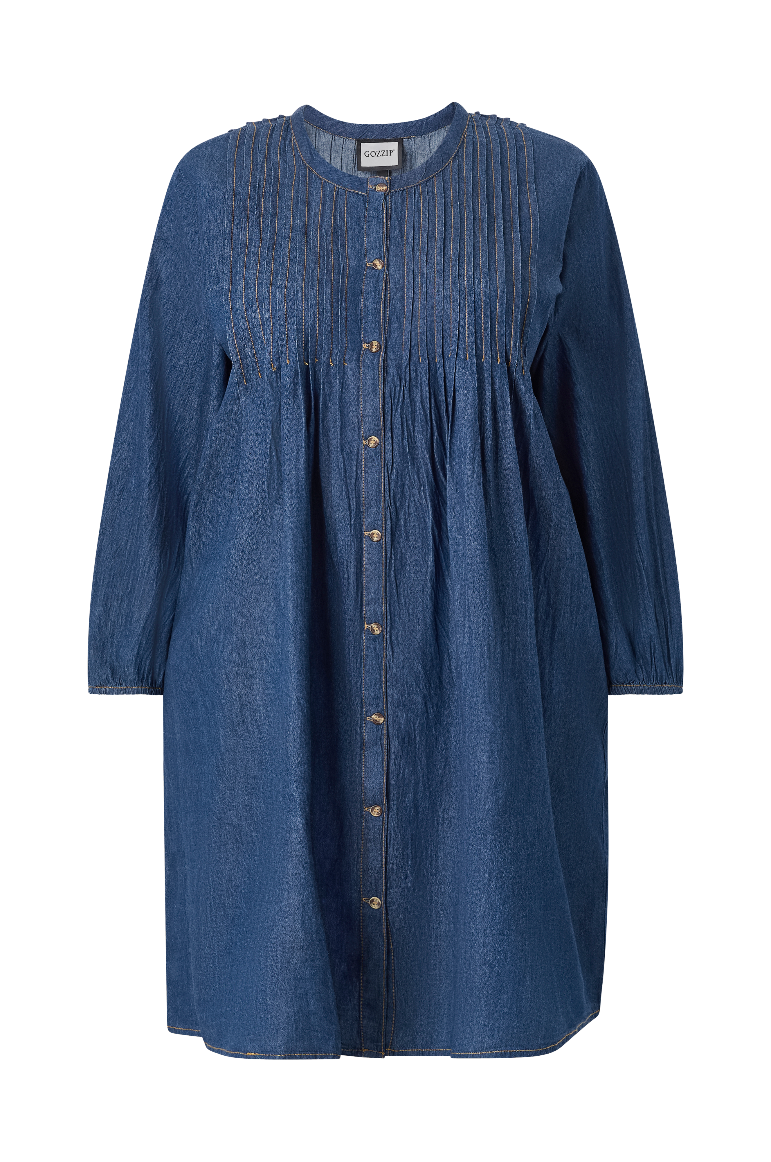• Kjole i denim med løs pasform• Rund halsudskæring• Syede, bølgeformede detaljer oppe foran og bagpå• Knapper hele vejen frem• Lange ærmer med elastik ved manchetterne• Sidelommer• Afrundet søm• Plusstørrelser• Længde: 98 cm i størrelse S