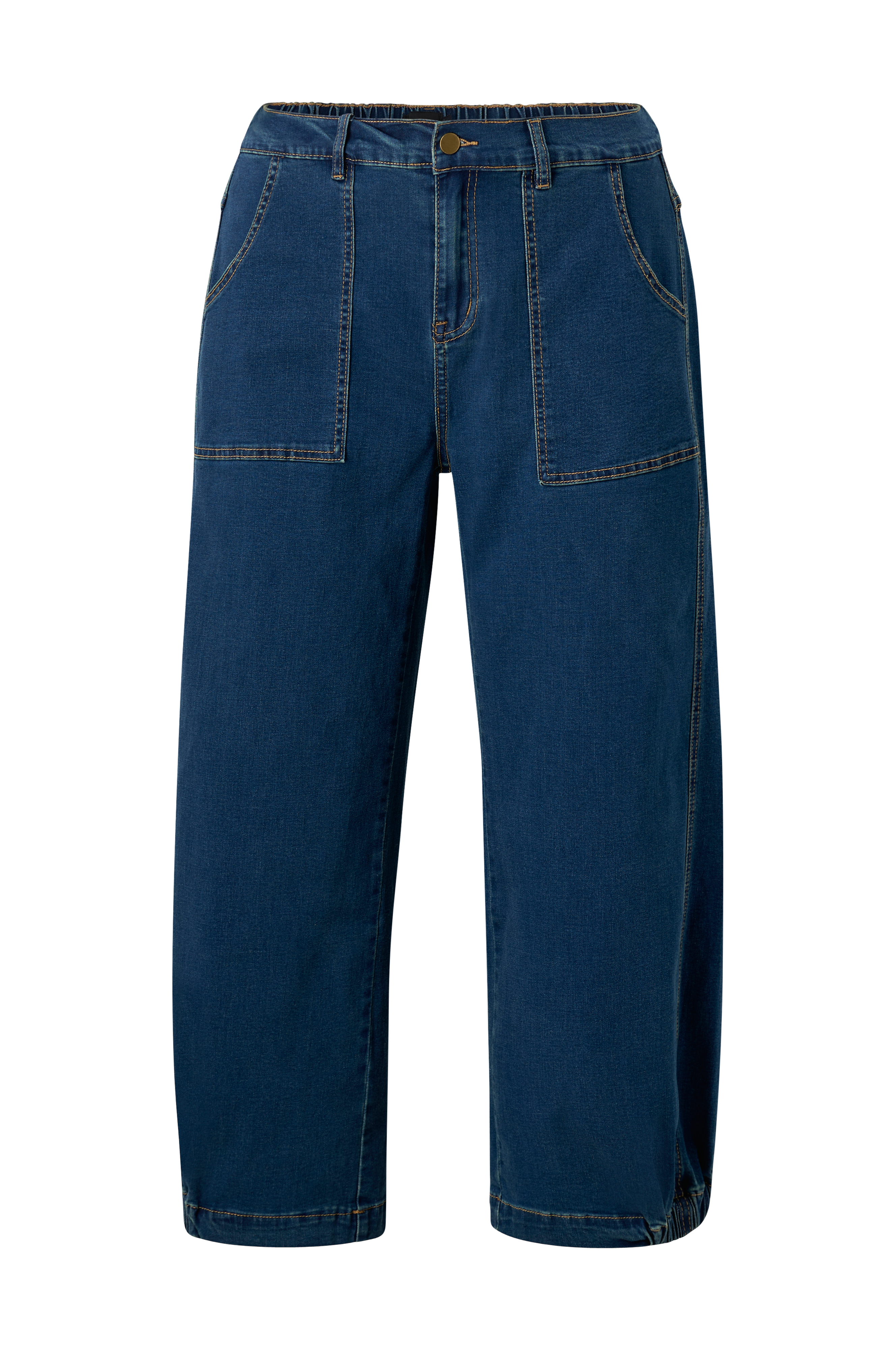 • Strækdenim• Baggy pasform• Elastisk bånd bagpå ved taljen• To lommer foran• To baglommer• Gylp med lynlås• Store størrelser• Elastisk bånd ved enden af benene
