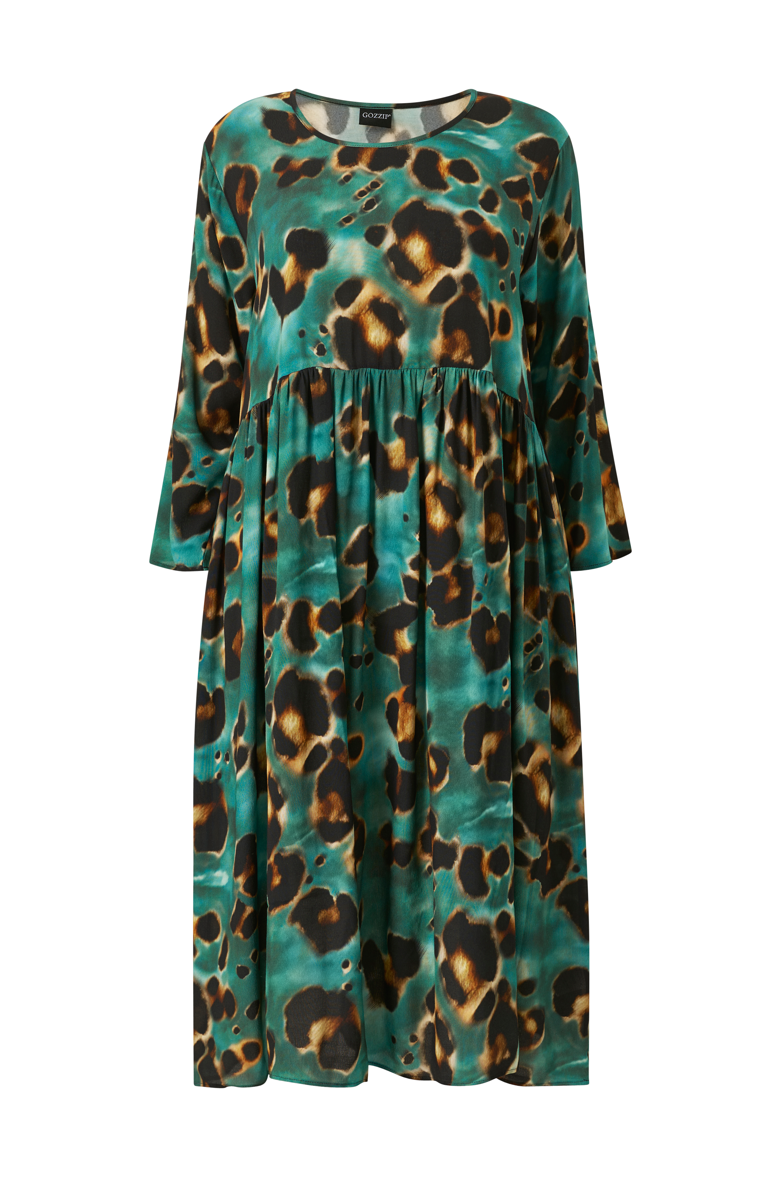 • Store størrelser• Model med svaj• Rund halsudskæring med lille kant• Rynket talje• Langt, lige ærme• Indlagte sidelommer• Længde: 127 cm i størrelse S
