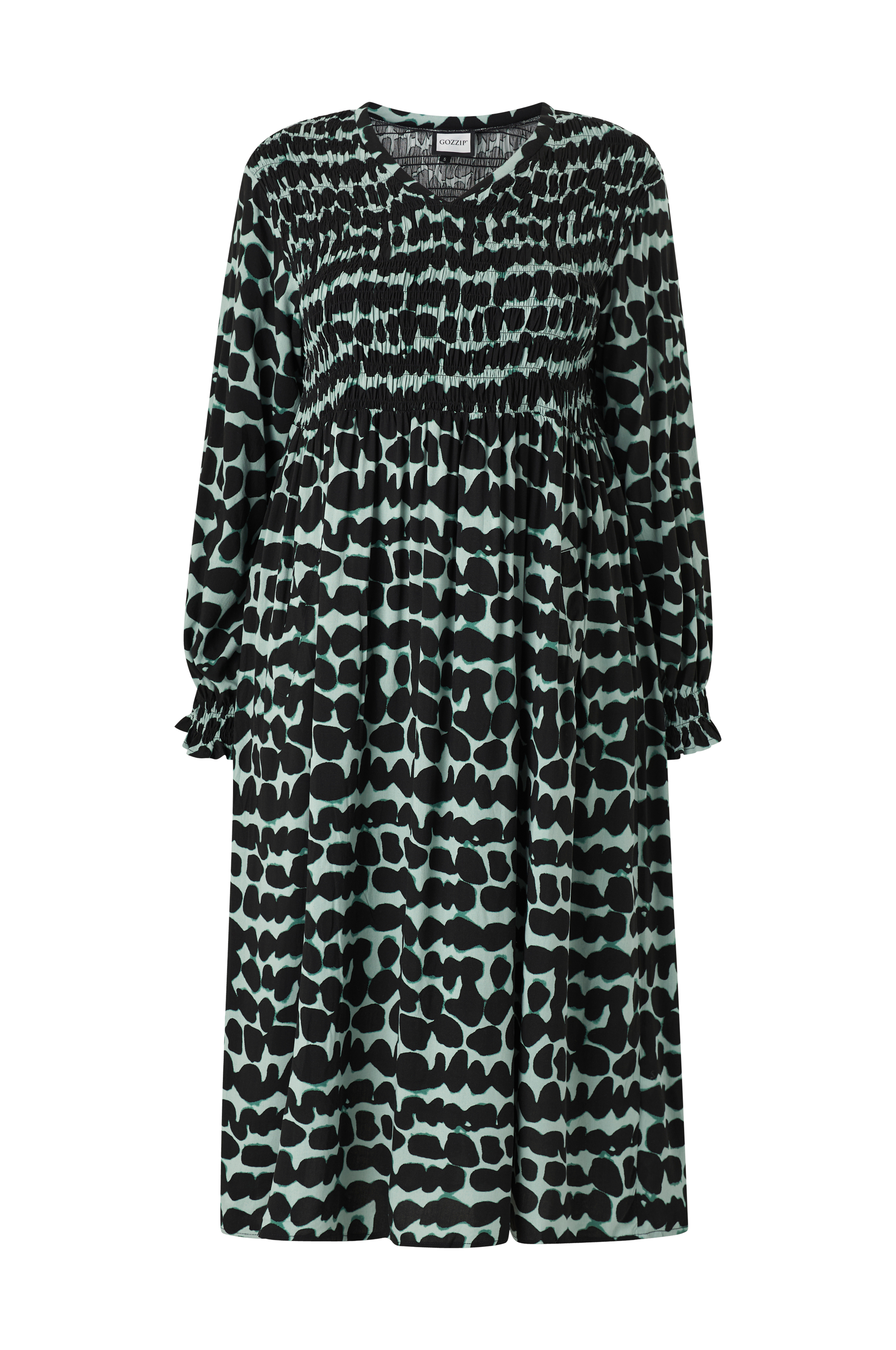 • Store størrelser• Lang model med svaj med elastisk smock på toppen• V-formet halsudskæring• Ekstra langt, bredt ærme med elastiksømme nederst• Indlagte lommer• Længde: 127 cm i størrelse S